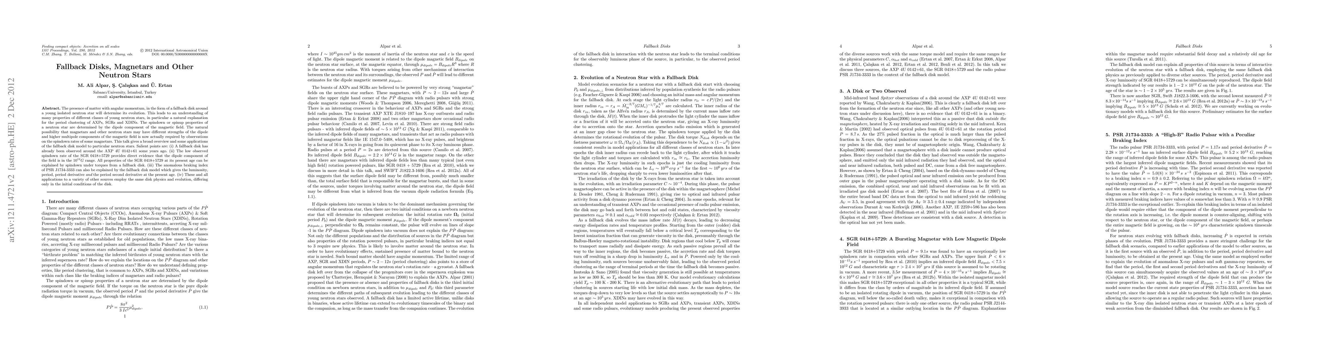 This paper explores the role of fallback disks in shaping the evolution of isolated neutron stars, explaining period clustering in AXPs, SGRs, and XDINs. It highlights the significance of different magnetic field strengths in magnetars and other neutron stars, supported by observations of specific stars like SGR 0418+5729 and PSR J1734-3333.