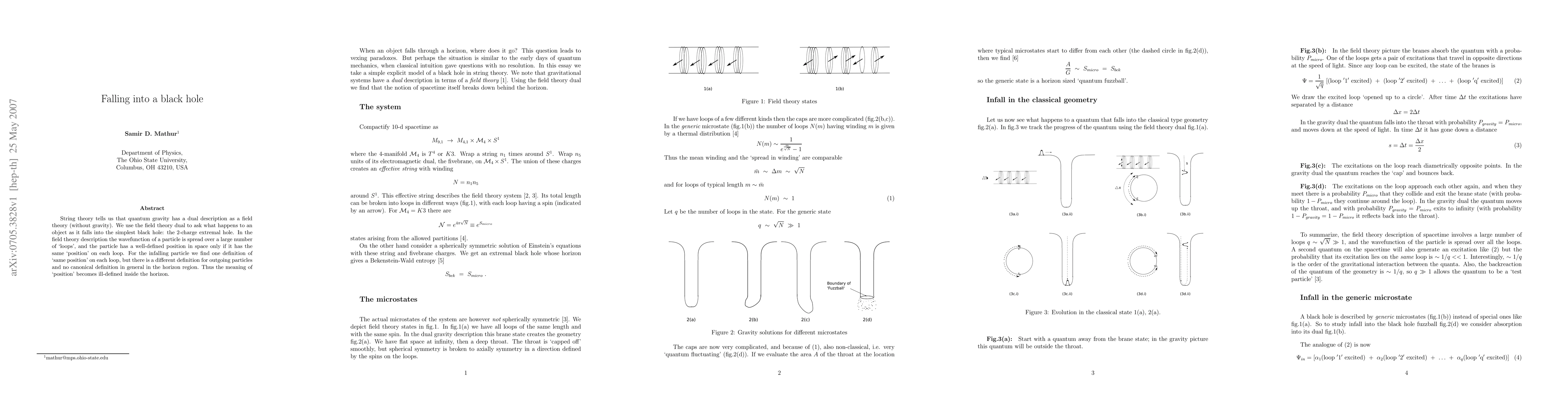 String theory tells us that quantum gravity has a dual description as a field theory (without gravity). We use the field theory dual to ask what happens to an object as it falls into the simplest black hole: the 2-charge extremal hole. In the field theory description the wavefunction of a particle is spread over a large number of `loops', and the particle has a well-defined position in space only if it has the same `position' on each loop. For the infalling particle we find one definition of `same position' on each loop, but there is a different definition for outgoing particles and no canonical definition in general in the horizon region. Thus the meaning of `position' becomes ill-defined inside the horizon.
