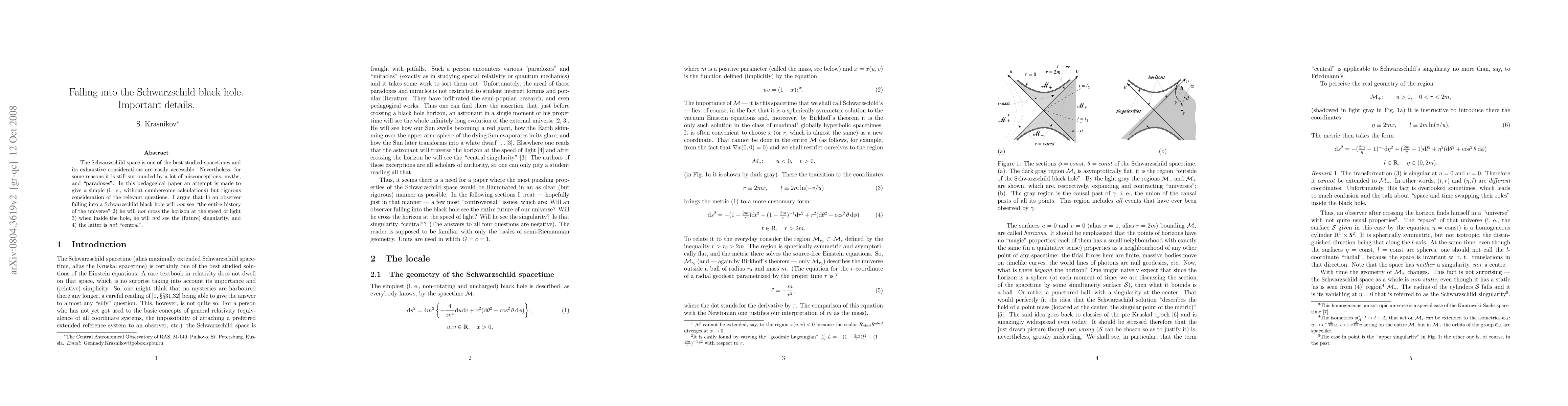 The Schwarzschild space is one of the best studied spacetimes and its exhaustive considerations are easily accessible. Nevertheless, by some reasons it is still surrounded by a lot of misconceptions, myths, and "paradoxes". In this pedagogical paper an attempt is made to give a simple (i. e., without cumbersome calculations), but rigorous consideration to the relevant questions. I argue that 1) an observer falling into a Schwarzschild black hole will \emph{not} see "the entire history of the universe" 2) he will \emph{not} cross the horizon at the speed of light 3) when inside the hole, he will \emph{not} see the (future) singularity and 4) the latter is \emph{not} "central".