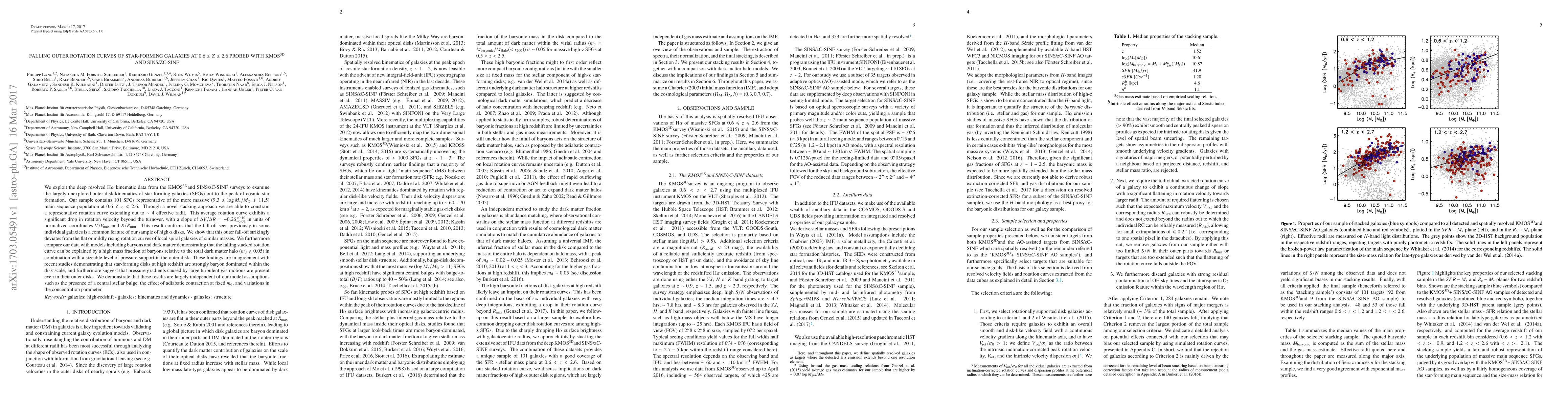This research examines the outer disk kinematics of star-forming galaxies at high redshifts using Halpha kinematic data, revealing a significant drop in rotation velocity beyond the turnover. The findings suggest that high-redshift star-forming galaxies exhibit falling rotation curves, differing from local spiral galaxies, and can be explained by a high baryon mass fraction and pressure support in the outer disks.
