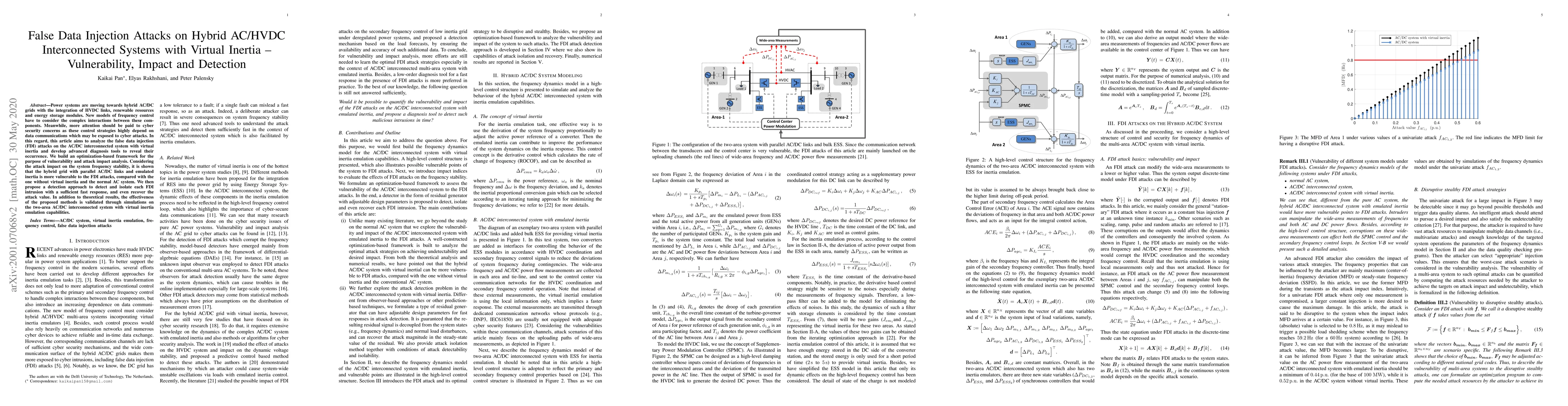 This paper investigates false data injection (FDI) attacks on hybrid AC/DC power grids with virtual inertia, analyzing their vulnerabilities and impacts on system frequency stability. It proposes an optimization-based framework for vulnerability assessment, a detection method for fast intrusion isolation, and validates the approach through simulations.