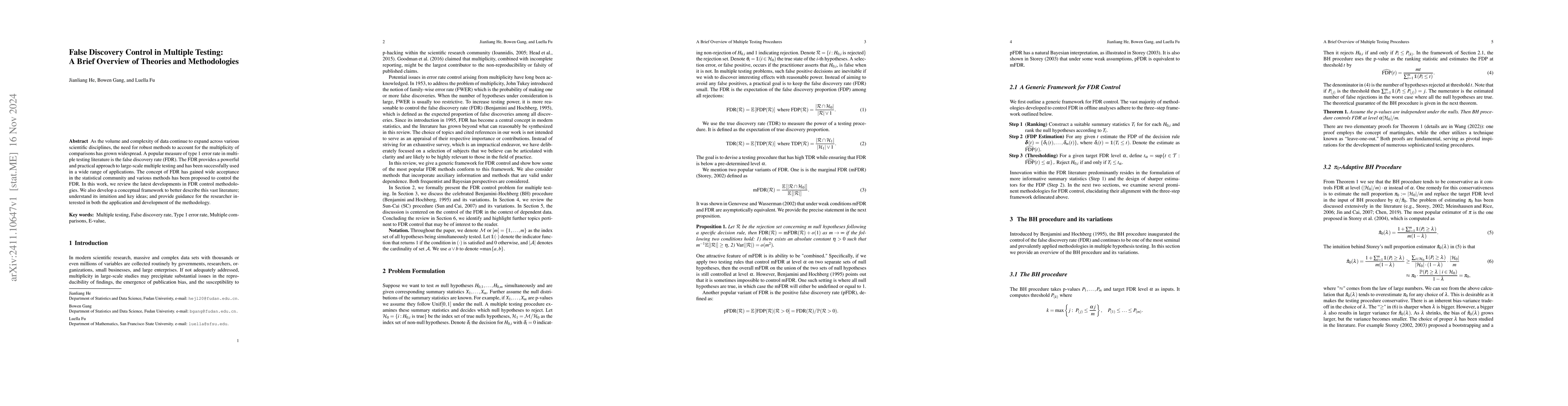 This paper reviews contemporary theories and methodologies for controlling the false discovery rate (FDR) in multiple testing scenarios, providing a conceptual framework to aid researchers in understanding and applying these techniques effectively. It also highlights the latest advancements in FDR control methods.