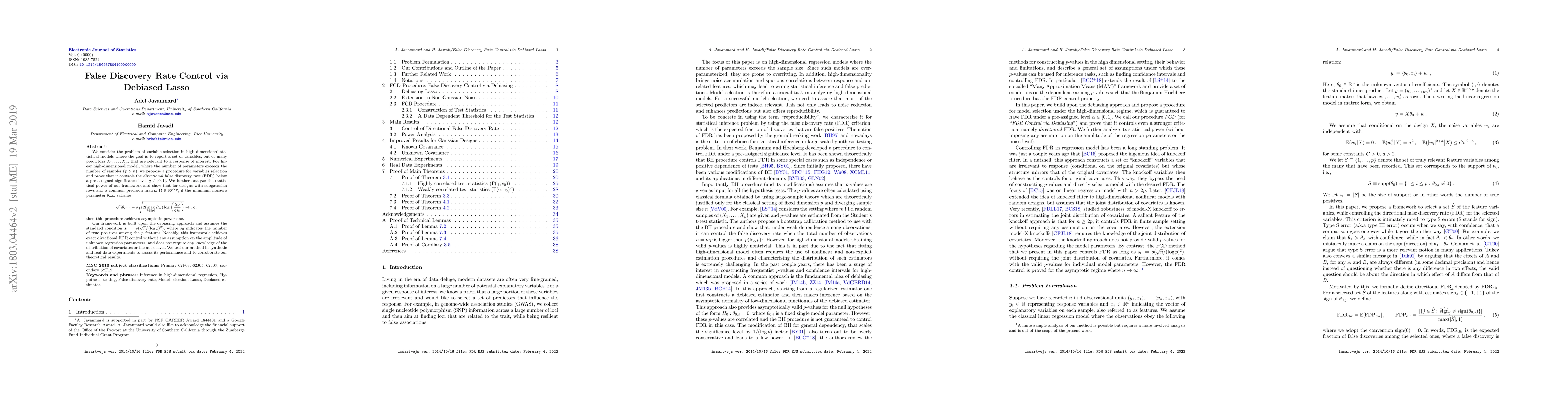 We consider the problem of variable selection in high-dimensional statistical models where the goal is to report a set of variables, out of many predictors $X_1, \dotsc, X_p$, that are relevant to a response of interest. For linear high-dimensional model, where the number of parameters exceeds the number of samples $(p>n)$, we propose a procedure for variables selection and prove that it controls the "directional" false discovery rate (FDR) below a pre-assigned significance level $q\in [0,1]$. We further analyze the statistical power of our framework and show that for designs with subgaussian rows and a common precision matrix $\Omega\in\mathbb{R}^{p\times p}$, if the minimum nonzero parameter $\theta_{\min}$ satisfies $$\sqrt{n} \theta_{\min} - \sigma \sqrt{2(\max_{i\in [p]}\Omega_{ii})\log\left(\frac{2p}{qs_0}\right)} \to \infty\,,$$ then this procedure achieves asymptotic power one. Our framework is built upon the debiasing approach and assumes the standard condition $s_0 = o(\sqrt{n}/(\log p)^2)$, where $s_0$ indicates the number of true positives among the $p$ features. Notably, this framework achieves exact directional FDR control without any assumption on the amplitude of unknown regression parameters, and does not require any knowledge of the distribution of covariates or the noise level. We test our method in synthetic and real data experiments to assess its performance and to corroborate our theoretical results.