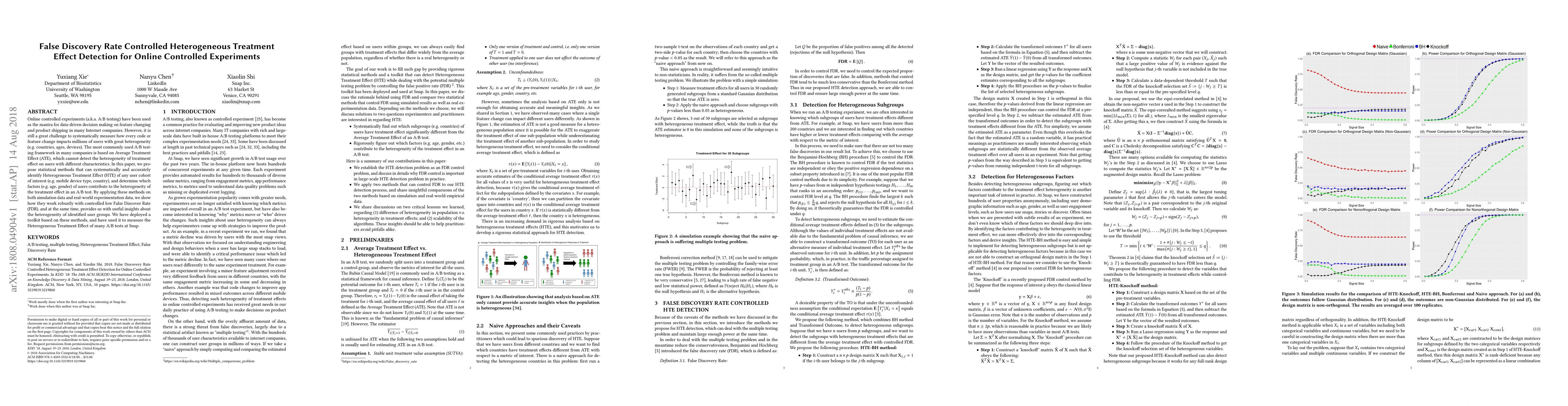This paper proposes statistical methods to detect Heterogeneous Treatment Effects (HTE) in online controlled experiments, addressing the limitations of Average Treatment Effect (ATE) frameworks. The methods accurately identify how different user cohorts respond to changes, providing insights into contributing factors and maintaining a controlled False Discovery Rate (FDR). The effectiveness is demonstrated through simulations and real-world data from Snap.