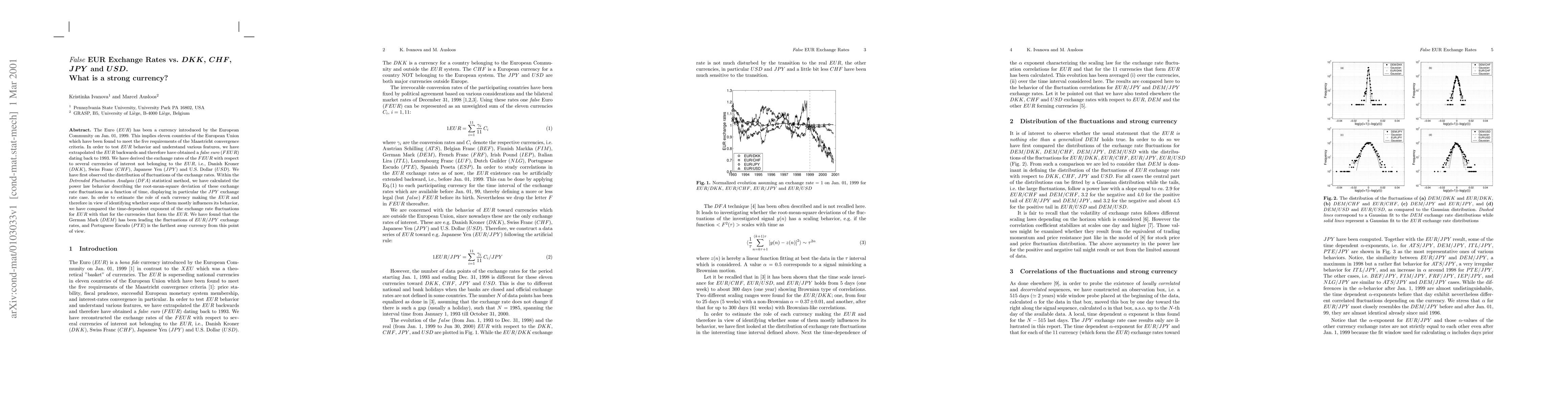This study examines the EUR exchange rate with 4 currencies (DKK, CHF, JPY, USD) to identify strong currency characteristics, finding that the German Mark influences EUR/JPY fluctuations most.