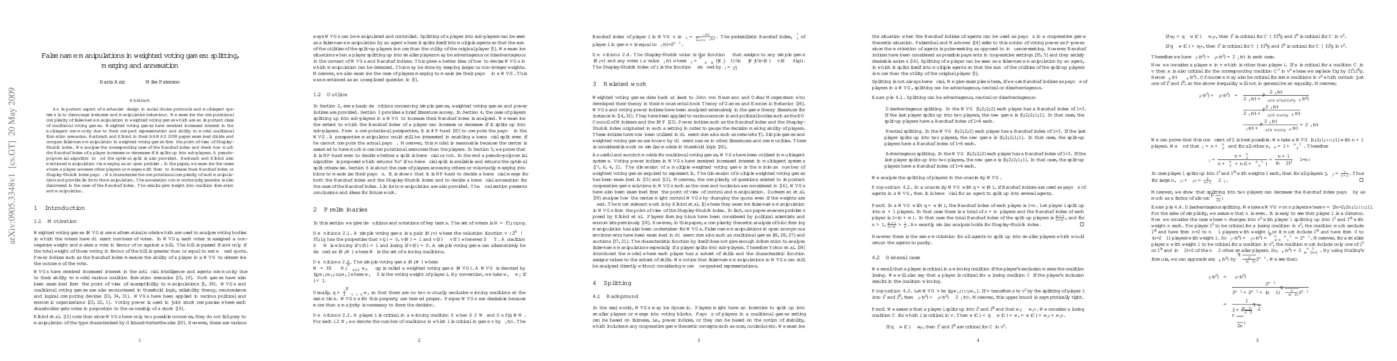 This paper investigates the computational complexity of false-name manipulation in weighted voting games, focusing on splitting, merging, and annexation strategies to increase a player's Banzhaf or Shapley-Shubik index. It provides a pseudo-polynomial algorithm for optimal player splits and characterizes the complexity of manipulation via annexation and merging.