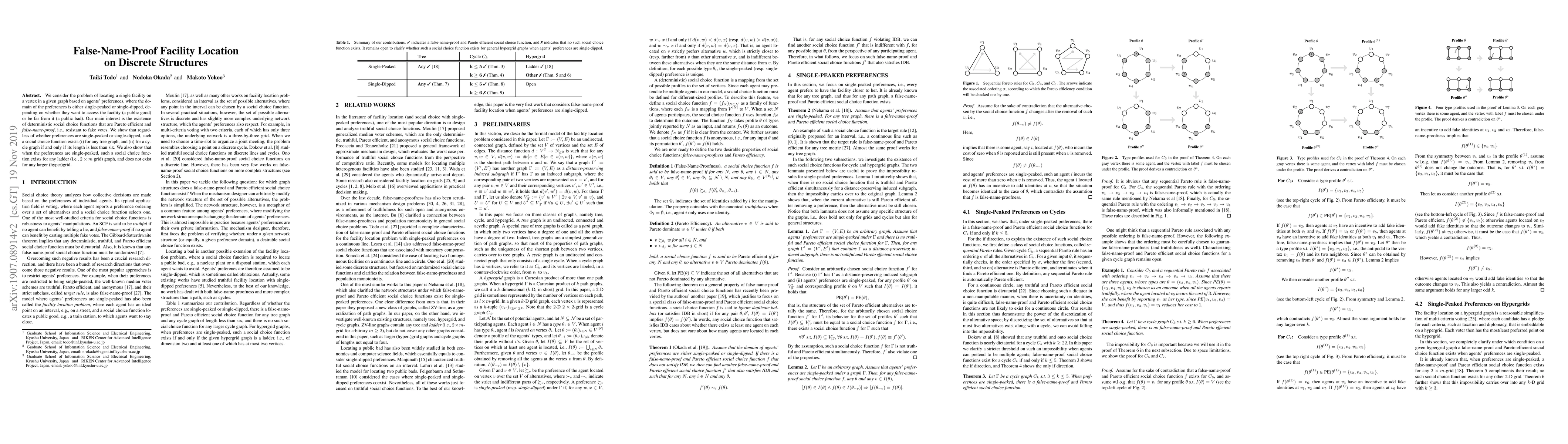 We consider the problem of locating a single facility on a vertex in a given graph based on agents' preferences, where the domain of the preferences is either single-peaked or single-dipped. Our main interest is the existence of deterministic social choice functions (SCFs) that are Pareto efficient and false-name-proof, i.e., resistant to fake votes. We show that regardless of whether preferences are single-peaked or single-dipped, such an SCF exists (i) for any tree graph, and (ii) for a cycle graph if and only if its length is less than six. We also show that when the preferences are single-peaked, such an SCF exists for any ladder (i.e., 2-by-m grid) graph, and does not exist for any larger hypergrid.