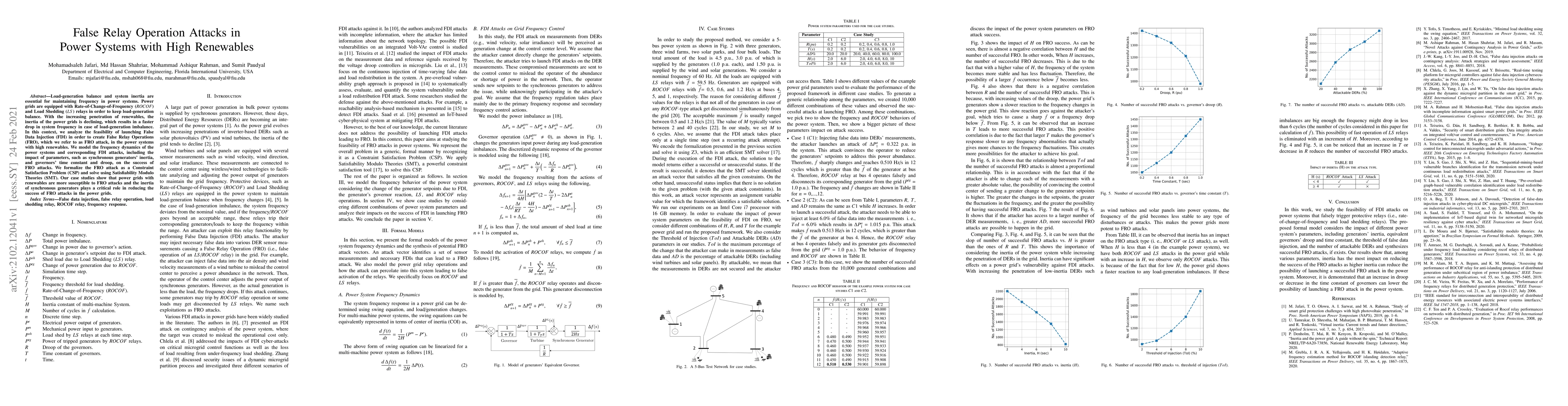 This paper investigates the vulnerability of power systems with high renewable energy penetration to False Relay Operation (FRO) attacks, which exploit Rate-of-Change-of-Frequency and Load Shedding relays. It models the frequency dynamics and formalizes FRO attacks as a Constraint Satisfaction Problem, revealing that lower grid inertia increases susceptibility to such attacks.