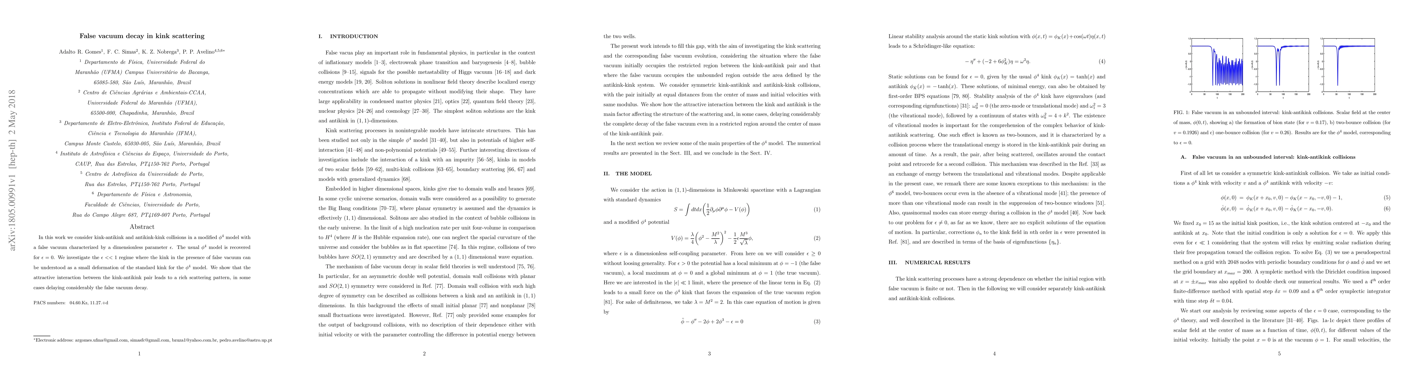 This paper examines kink-antikink and antikink-kink scattering in a modified $\phi^4$ model with a false vacuum, focusing on the $\epsilon<<1$ regime. It reveals that the attractive interaction between kinks and antikinks can significantly delay false vacuum decay.