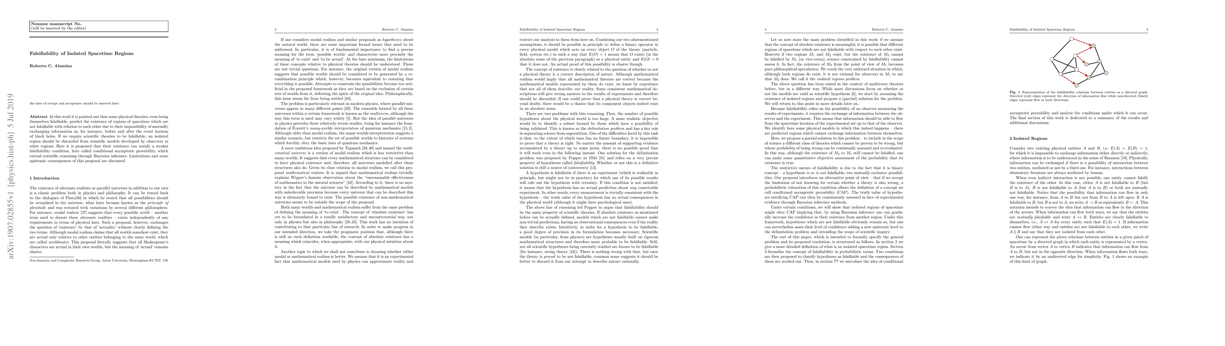 Research proposes a new falsifiability condition for isolated spacetime regions, allowing them to exist in theories even if they can't exchange information with other regions. This approach extends scientific reasoning through Bayesian inference.