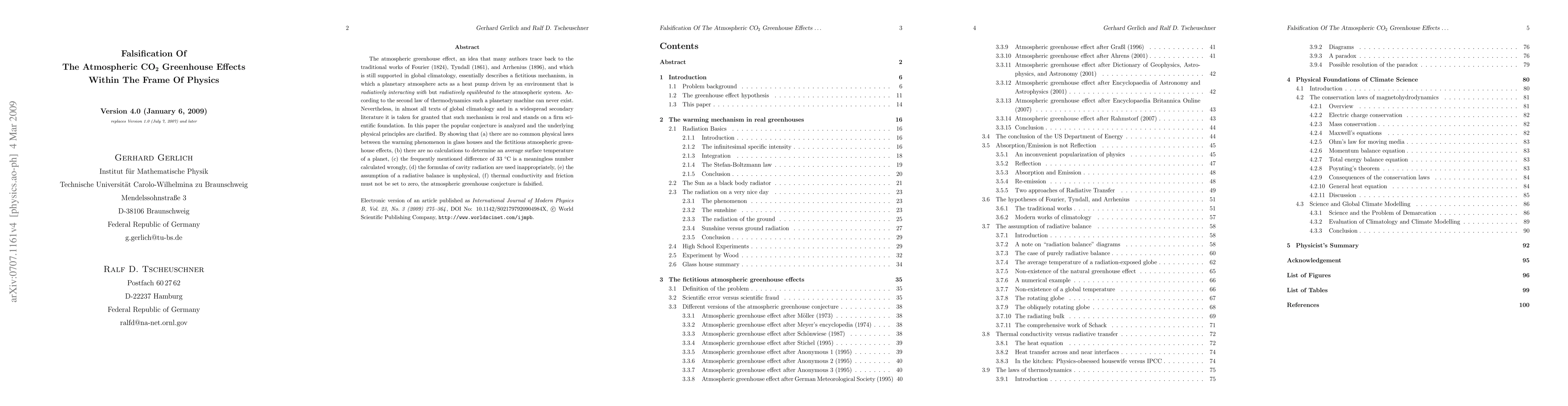 The atmospheric greenhouse effect, an idea that many authors trace back to the traditional works of Fourier (1824), Tyndall (1861), and Arrhenius (1896), and which is still supported in global climatology, essentially describes a fictitious mechanism, in which a planetary atmosphere acts as a heat pump driven by an environment that is radiatively interacting with but radiatively equilibrated to the atmospheric system. According to the second law of thermodynamics such a planetary machine can never exist. Nevertheless, in almost all texts of global climatology and in a widespread secondary literature it is taken for granted that such mechanism is real and stands on a firm scientific foundation. In this paper the popular conjecture is analyzed and the underlying physical principles are clarified. By showing that (a) there are no common physical laws between the warming phenomenon in glass houses and the fictitious atmospheric greenhouse effects, (b) there are no calculations to determine an average surface temperature of a planet, (c) the frequently mentioned difference of 33 degrees Celsius is a meaningless number calculated wrongly, (d) the formulas of cavity radiation are used inappropriately, (e) the assumption of a radiative balance is unphysical, (f) thermal conductivity and friction must not be set to zero, the atmospheric greenhouse conjecture is falsified.