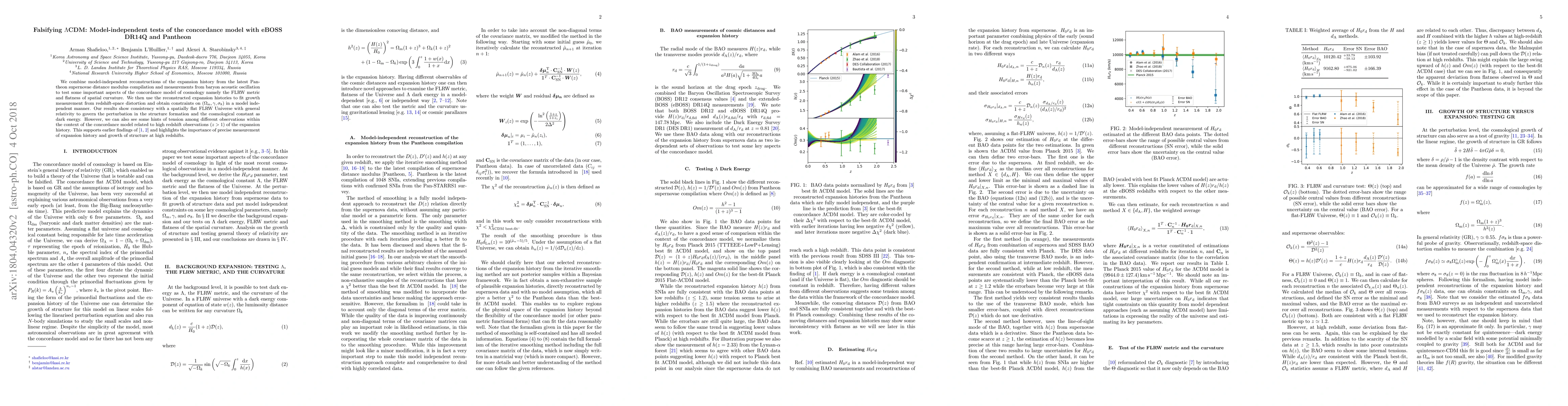 We combine model-independent reconstructions of the expansion history from the latest Pantheon supernovae distance modulus compilation and measurements from baryon acoustic oscillation to test some important aspects of the concordance model of cosmology namely the FLRW metric and flatness of spatial curvature. We then use the reconstructed expansion histories to fit growth measurement from redshift-space distortion and obtain strong constraints on $(\Omega_\mathrm{m},\gamma,\sigma_8)$ in a model independent manner. Our results show consistency with a spatially flat FLRW Universe with general relativity to govern the perturbation in the structure formation and the cosmological constant as dark energy. However, we can also see some hints of tension among different observations within the context of the concordance model related to high redshift observations ($z > 1$) of the expansion history. This supports earlier findings of Sahni et al. (2014) & Zhao et al. (2017) and highlights the importance of precise measurement of expansion history and growth of structure at high redshifts.