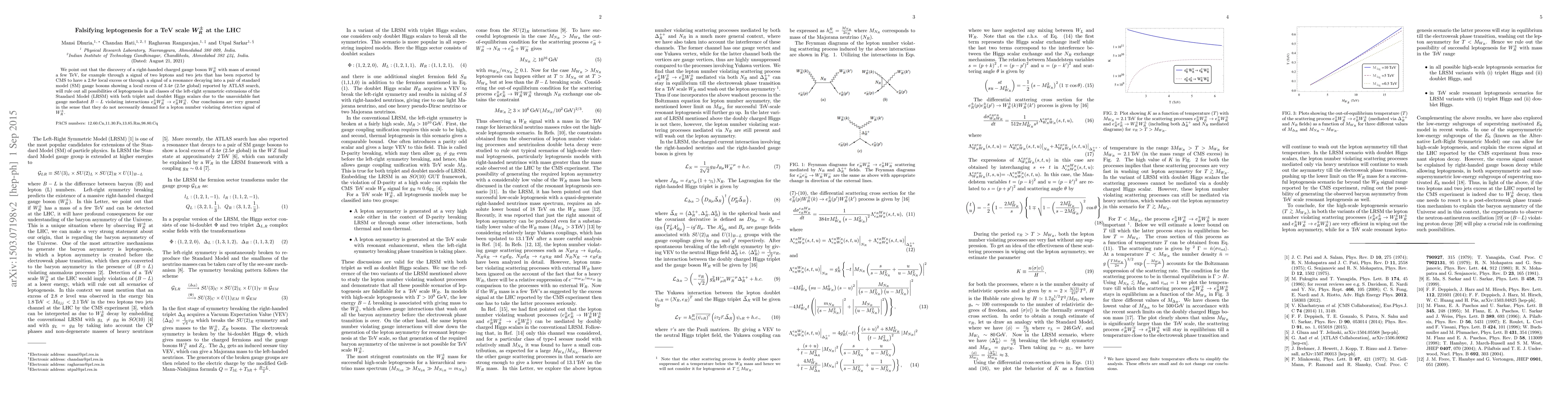 Discovering a right-handed charged gauge boson at the LHC would rule out leptogenesis in left-right symmetric extensions of the Standard Model, as it would indicate fast B-L violating interactions. This finding has implications for theories that rely on these models.