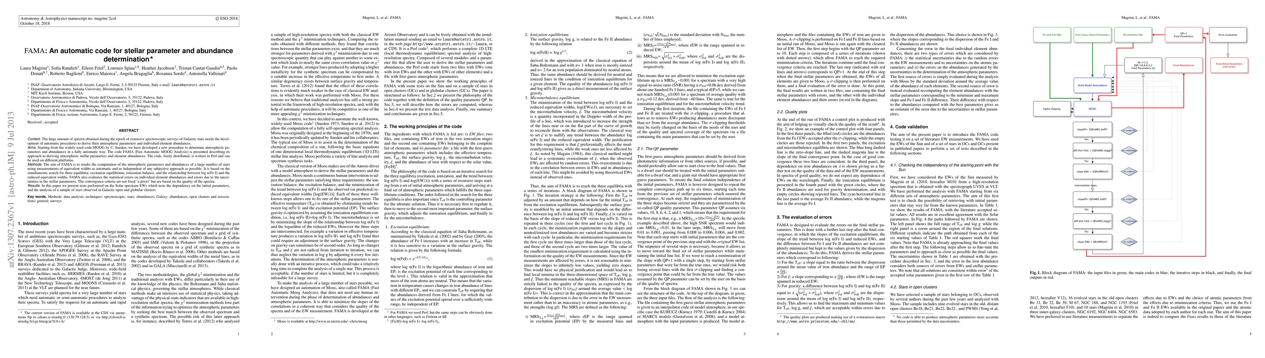 FAMA is a new automatic code developed for determining stellar atmospheric parameters and element abundances from spectra, based on the MOOG code. It aims to provide an independent, fully automatic, and platform-independent analysis of large spectroscopic surveys, evaluating statistical errors and convergence criteria based on spectrum quality.