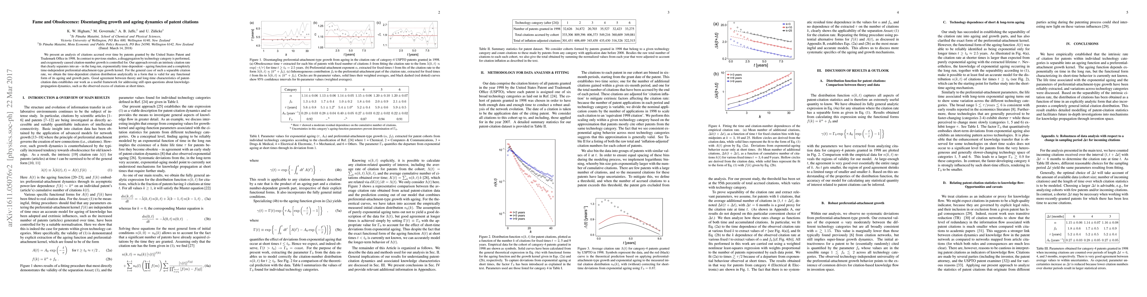 We present an analysis of citations accrued over time by patents granted by the United States Patent and Trademark Office in 1998. In contrast to previous studies, a disaggregation by technology category is performed, and exogenously caused citation-number growth is controlled for. Our approach reveals an intrinsic citation rate that clearly separates into an -- in the long run, exponentially time-dependent -- ageing function and a completely time-independent preferential-attachment-type growth kernel. For the general case of such a separable citation rate, we obtain the time-dependent citation distribution analytically in a form that is valid for any functional form of its ageing and growth parts. Good agreement between theory and long-time characteristics of patent-citation data establishes our work as a useful framework for addressing still open questions about knowledge-propagation dynamics, such as the observed excess of citations at short times.