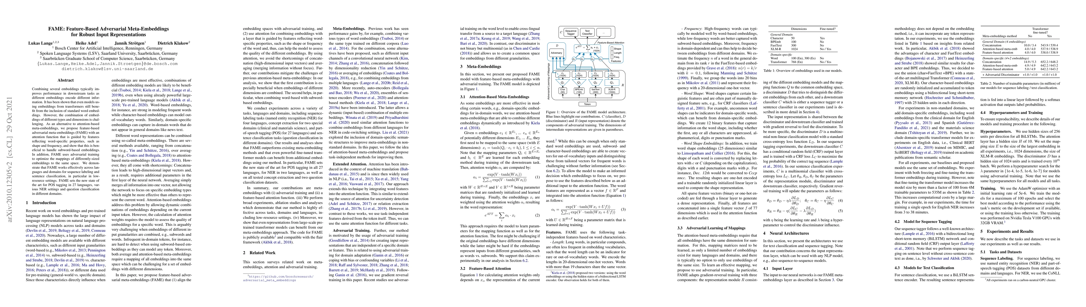 Researchers developed FAME, a feature-based adversarial meta-embedding method that improves input representations for robust performance in downstream tasks, achieving state-of-the-art results in various NLP tasks across languages.