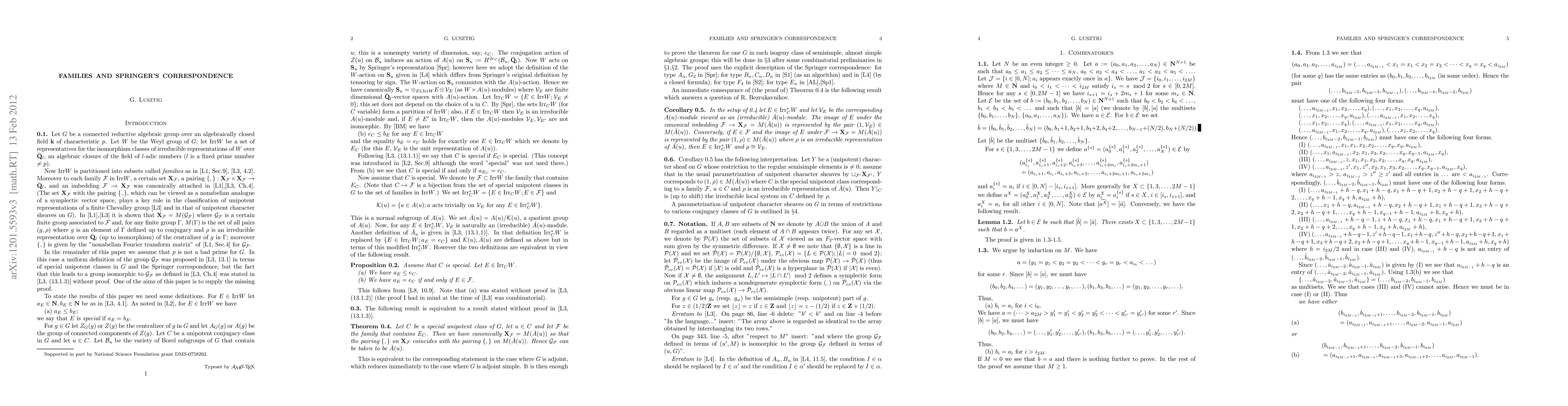 We establish a relation between the known parametrization of a family of irreducible representations of a Weyl group and Springer's correspondence. We outline a parametrization of unipotent character sheaves on a connected reductive group in terms of restrictions to various conjugacy classes.