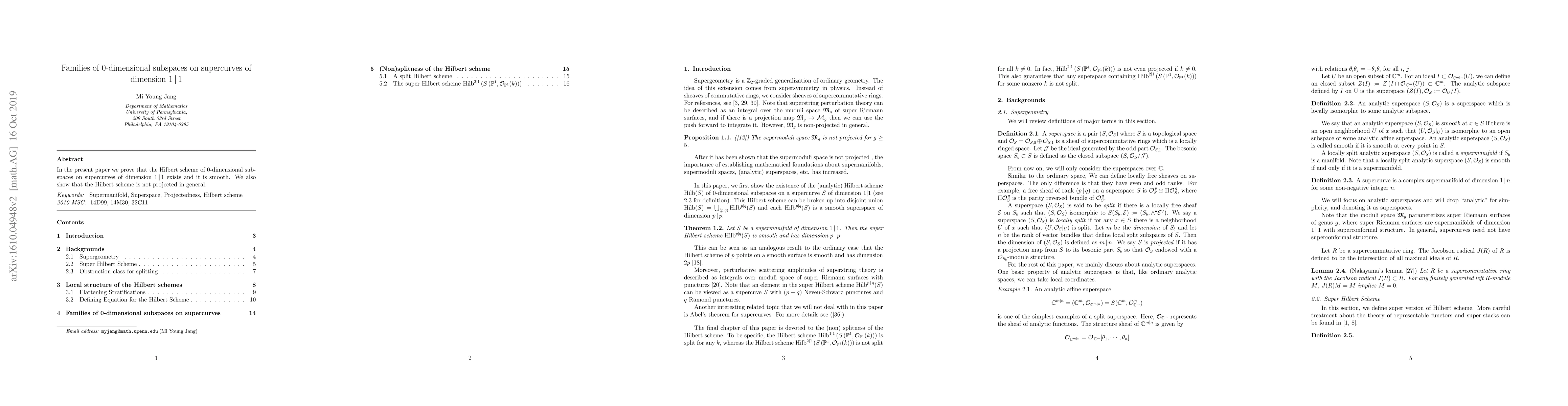 Researchers proved the existence of a smooth Hilbert scheme for 0-dimensional subspaces on supercurves, but found it is not split in general.