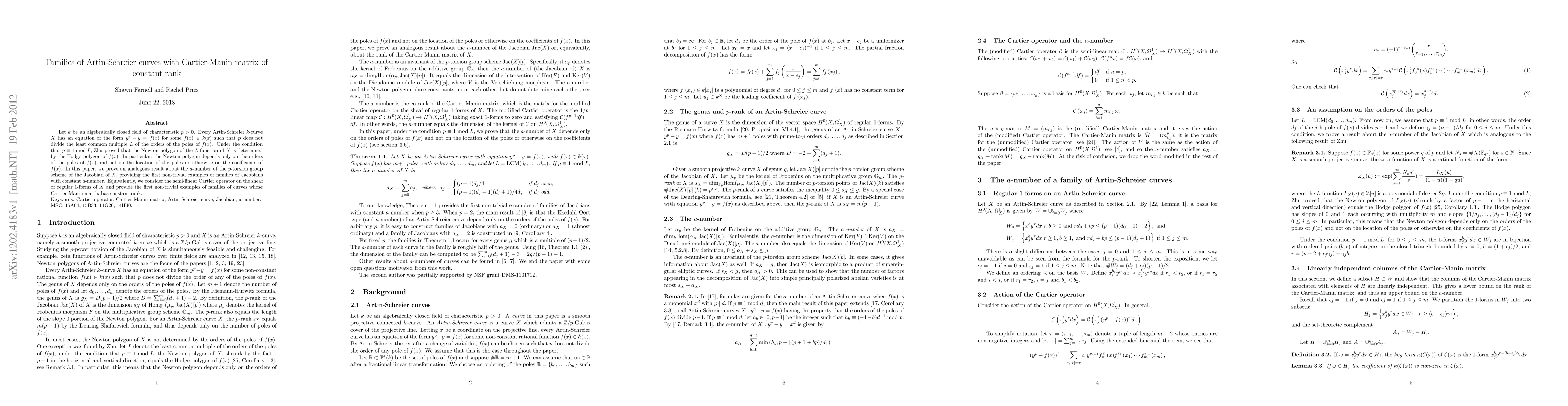 This research explores Artin-Schreier curves over an algebraically closed field of characteristic p > 0, proving that under certain conditions, the a-number of the Jacobian's p-torsion group scheme is constant within families of such curves. It also shows that these families exhibit a Cartier-Manin matrix of constant rank.