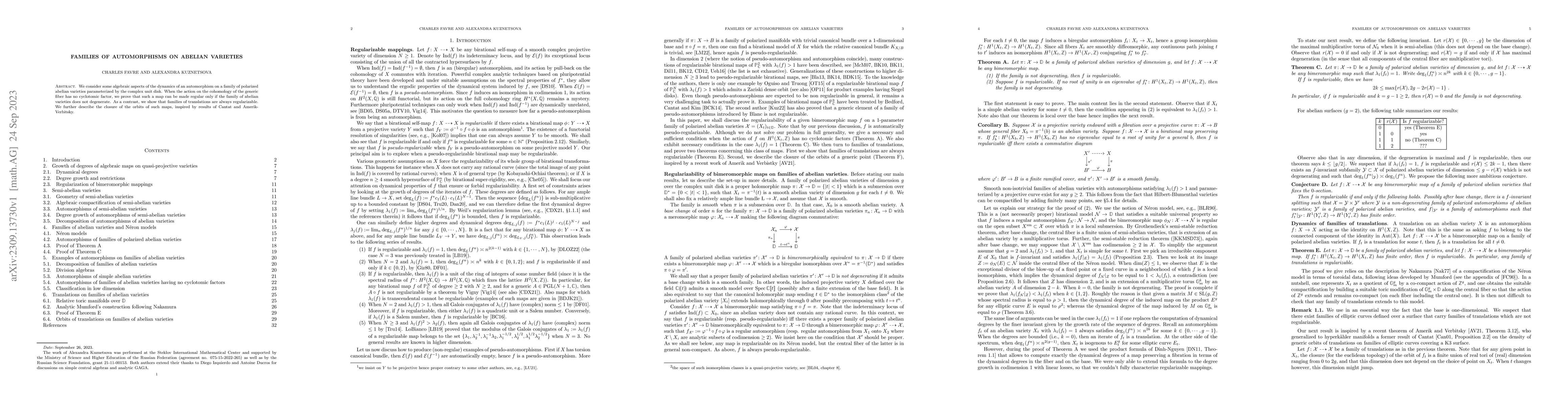 This paper explores the algebraic dynamics of automorphisms on families of polarized abelian varieties parameterized by the complex unit disk, proving that regularizable maps with non-cyclotomic action on cohomology prevent degeneration. It contrasts this with always regularizable families of translations and describes the closure of map orbits inspired by Cantat and Amerik-Verbitsky's work.