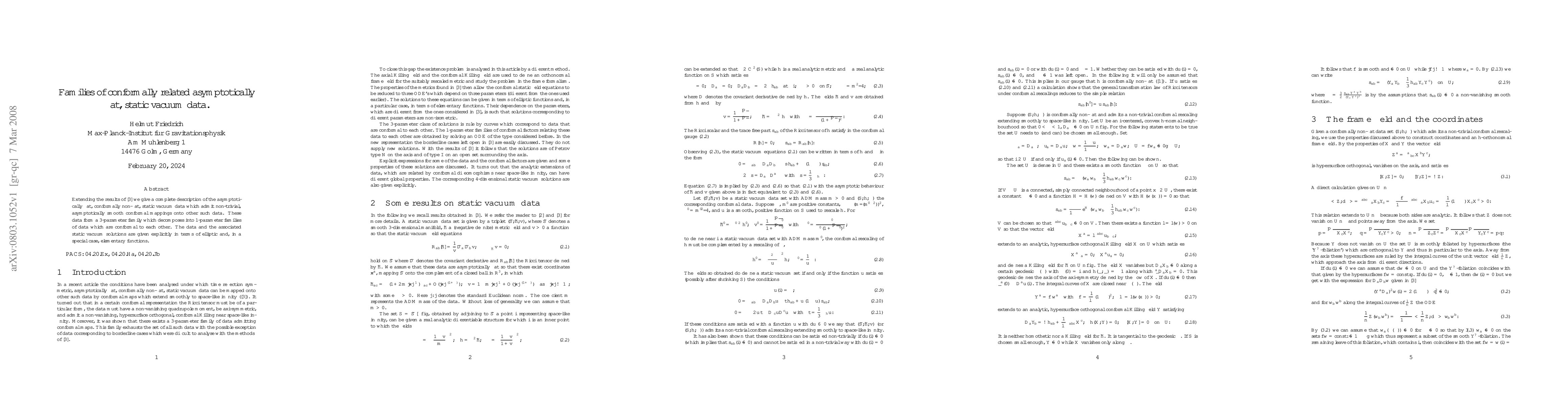 Extending the results of an earlier article we give a complete description of the asymptotically flat, conformally non-flat, static vacuum data which admit non-trivial, asymptotically smooth conformal mappings onto other such data. These data form a 3-parameter family which decomposes into 1-parameter families of data which are conformal to each other. The data and the associated static vacuum solutions are given explicitly in terms of elliptic and, in a special case, elementary functions.