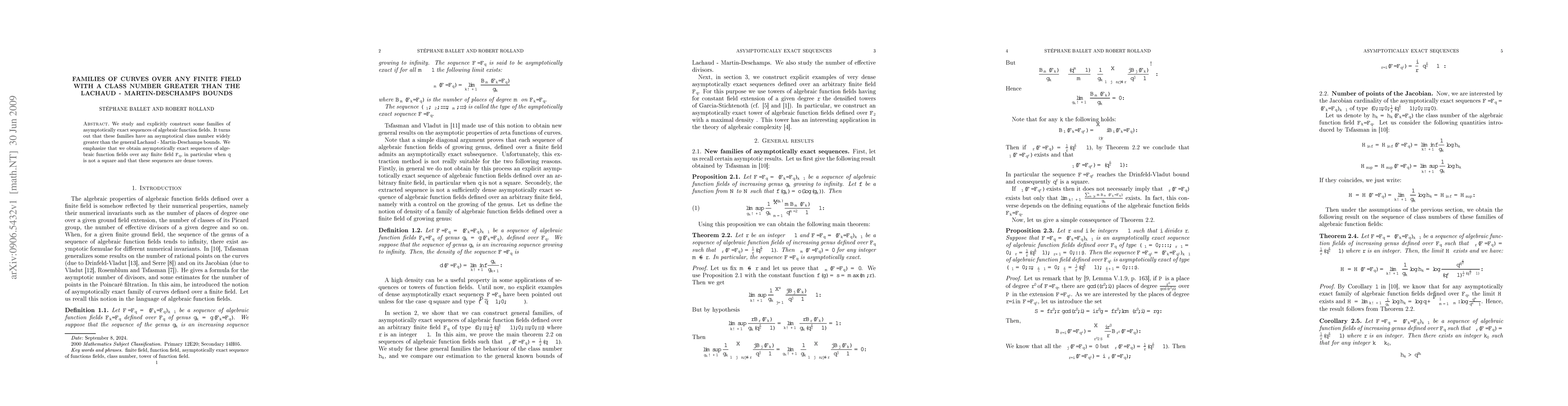 We study and explicitly construct some families of asymptotically exact sequences of algebraic function fields. It turns out that these families have an asymptotical class number widely greater than the general Lachaud - Martin-Deschamps bounds. We emphasize that we obtain asymptotically exact sequences of algebraic function fields over any finite field $\F_q$, in particular when $q$ is not a square and that these sequences are dense towers.