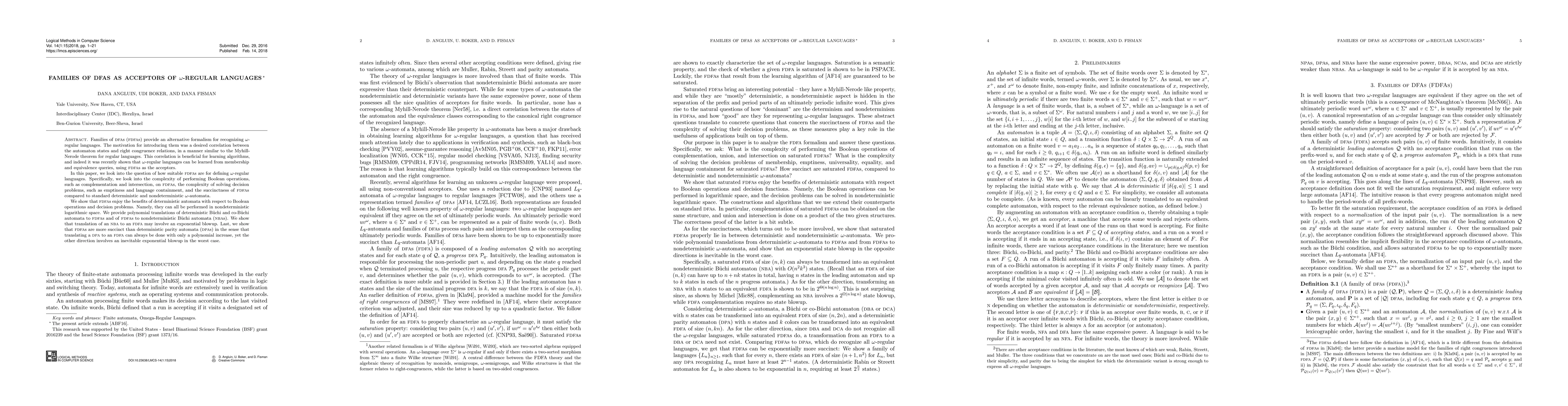 Families of DFAs (FDFAs) provide an alternative formalism for recognizing $\omega$-regular languages. The motivation for introducing them was a desired correlation between the automaton states and right congruence relations, in a manner similar to the Myhill-Nerode theorem for regular languages. This correlation is beneficial for learning algorithms, and indeed it was recently shown that $\omega$-regular languages can be learned from membership and equivalence queries, using FDFAs as the acceptors. In this paper, we look into the question of how suitable FDFAs are for defining omega-regular languages. Specifically, we look into the complexity of performing Boolean operations, such as complementation and intersection, on FDFAs, the complexity of solving decision problems, such as emptiness and language containment, and the succinctness of FDFAs compared to standard deterministic and nondeterministic $\omega$-automata. We show that FDFAs enjoy the benefits of deterministic automata with respect to Boolean operations and decision problems. Namely, they can all be performed in nondeterministic logarithmic space. We provide polynomial translations of deterministic B\"uchi and co-B\"uchi automata to FDFAs and of FDFAs to nondeterministic B\"uchi automata (NBAs). We show that translation of an NBA to an FDFA may involve an exponential blowup. Last, we show that FDFAs are more succinct than deterministic parity automata (DPAs) in the sense that translating a DPA to an FDFA can always be done with only a polynomial increase, yet the other direction involves an inevitable exponential blowup in the worst case.