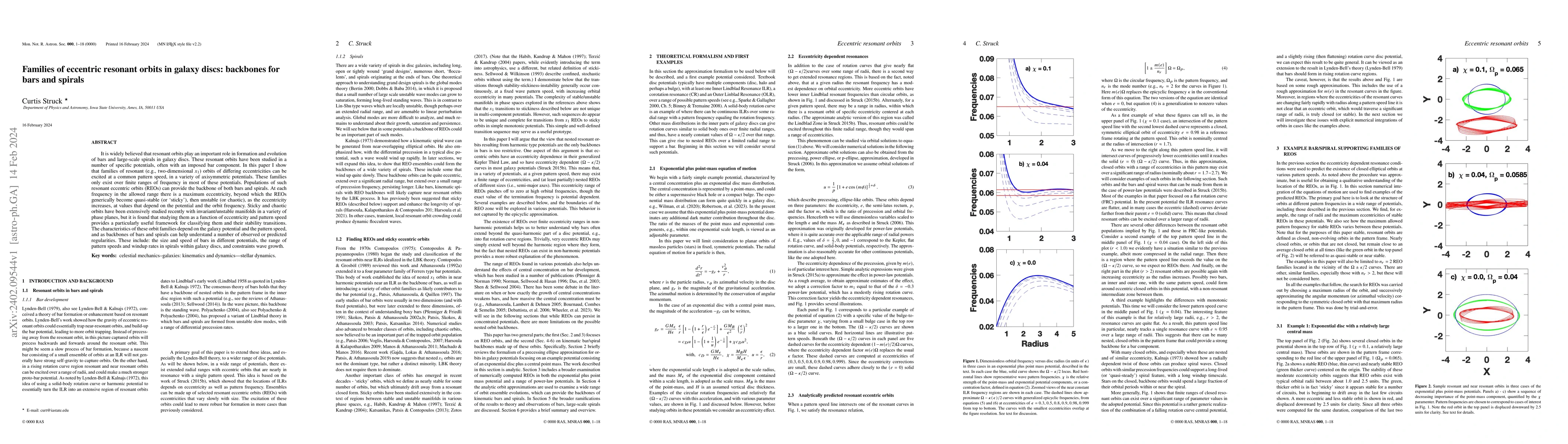 This paper explores families of resonant eccentric orbits (REOs) in galaxy discs that can form the backbone of bars and spirals. It demonstrates that these orbits, which vary in eccentricity but resonate at a common pattern speed, exist in a variety of axisymmetric potentials and play a crucial role in the formation and evolution of galactic structures.