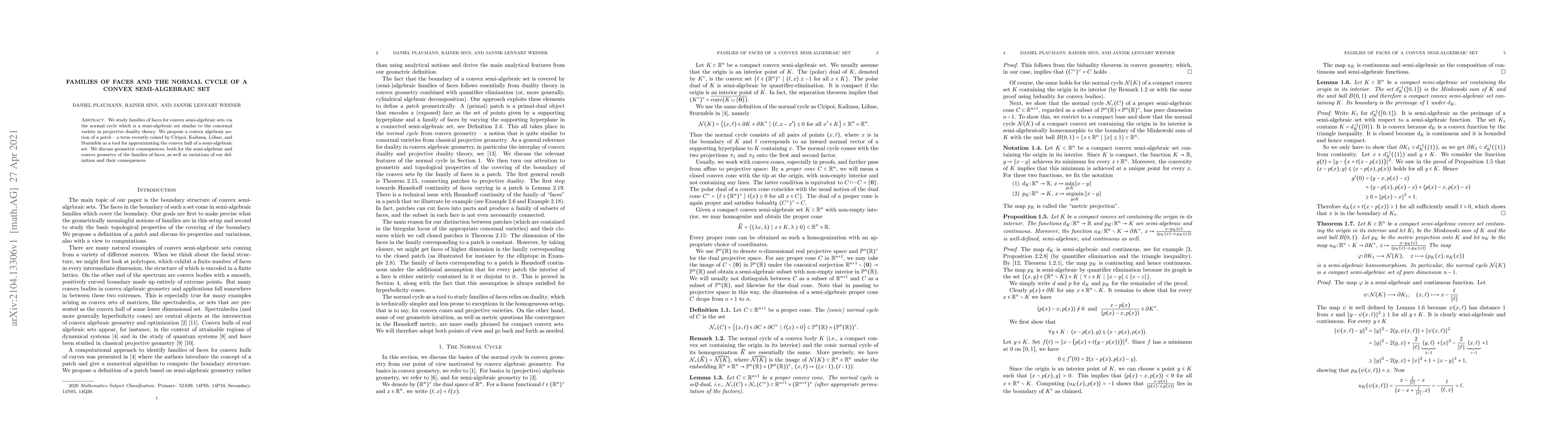 This paper investigates families of faces within convex semi-algebraic sets using the normal cycle, a semi-algebraic set analogous to the conormal variety. It introduces the concept of "patch" for approximating the convex hull of such sets, discussing geometric implications and variations of this definition.