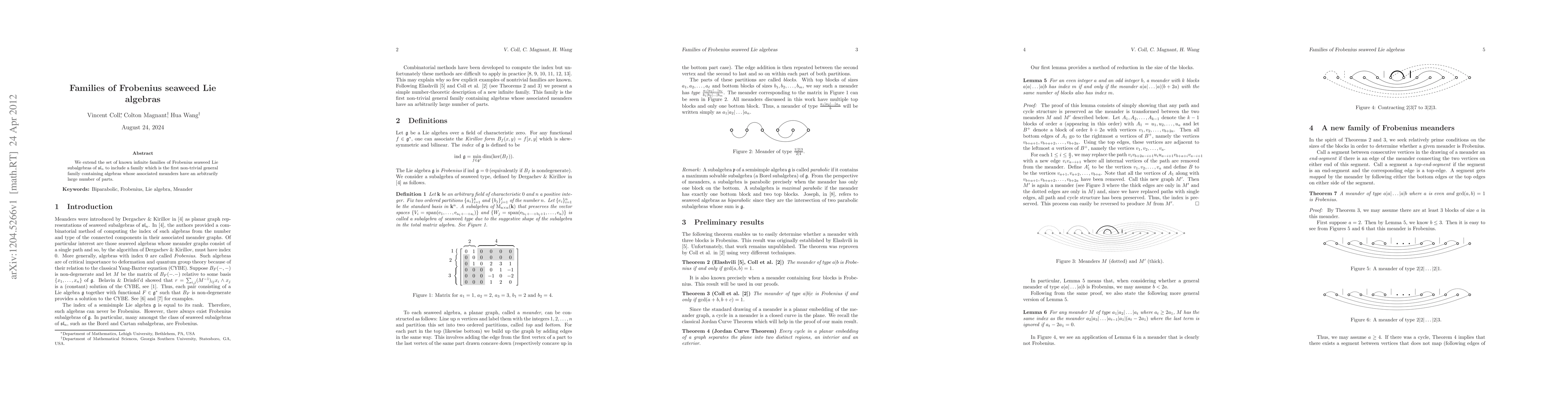We extend the set of known infinite families of Frobenius seaweed Lie subalgebras of $\mathfrak{sl}_{n}$ to include a family which is the first non-trivial general family containing algebras whose associated meanders have an arbitrarily large number of parts.