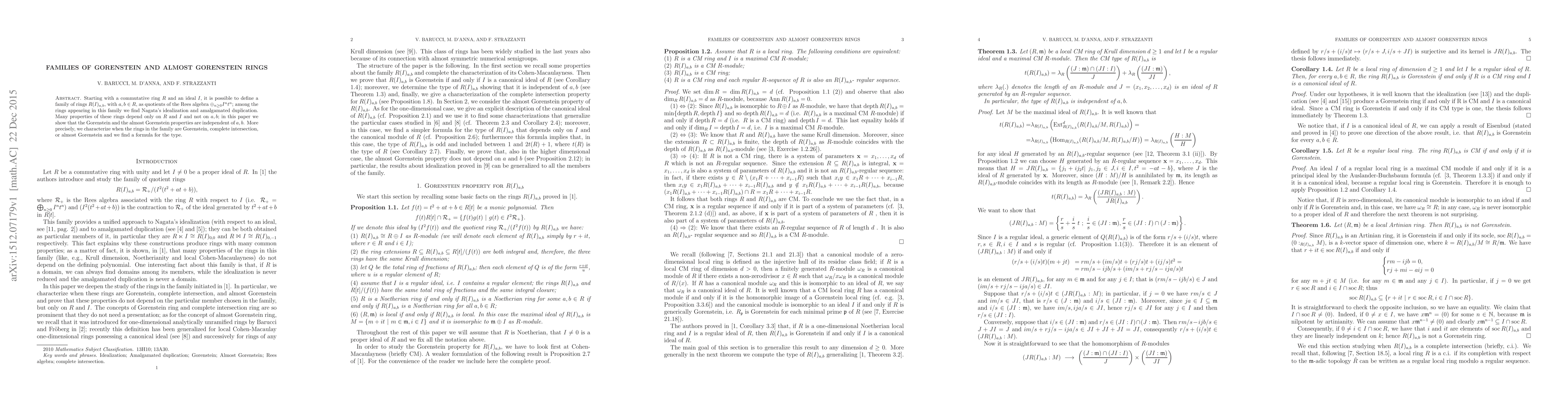 This paper studies a family of rings $R(I)_{a,b}$ derived from a commutative ring $R$ and an ideal $I$, focusing on their Gorenstein and almost Gorenstein properties. It demonstrates that these properties are independent of the parameters $a$ and $b$, providing characterizations and a formula for the rings' types.