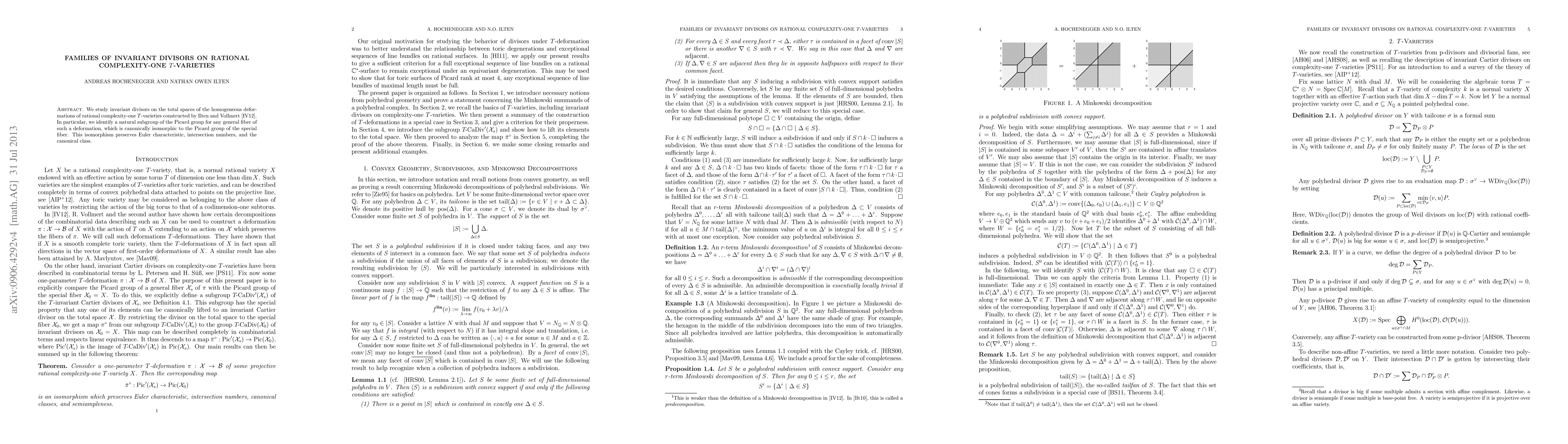 This paper investigates invariant divisors on deformations of rational complexity-one T-varieties, identifying a natural subgroup in the Picard group that mirrors the special fiber's Picard group, preserving Euler characteristic, intersection numbers, and the canonical class.