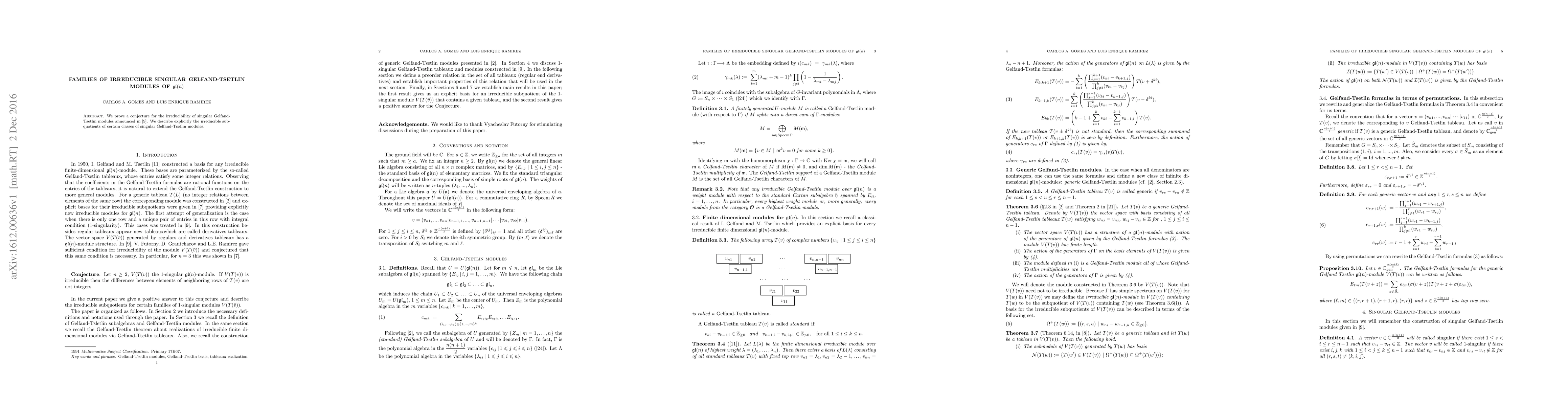 This paper proves a conjecture regarding the irreducibility of singular Gelfand-Tsetlin modules for $\mathfrak{gl}(n)$ and explicitly identifies the irreducible subquotients within certain classes of these modules.