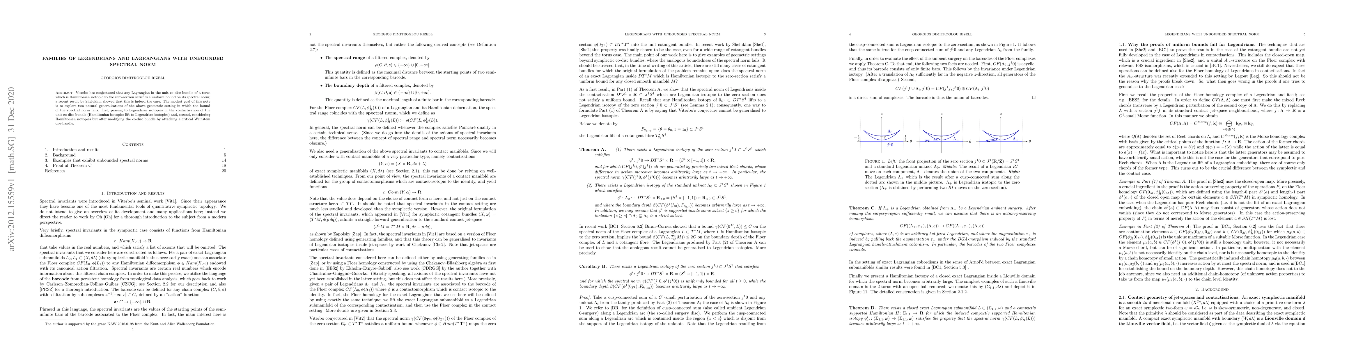 Viterbo has conjectured that any Lagrangian in the unit co-disc bundle of a torus which is Hamiltonian isotopic to the zero-section satisfies a uniform bound on its spectral norm; a recent result by Shelukhin showed that this is indeed the case. The modest goal of this note is to explore two natural generalisations of the above geometric setting in which the bound of the spectral norm fails: first, passing to Legendrian isotopies in the contactisation of the unit co-disc bundle (Hamiltonian isotopies lift to Legendrian isotopies) and, second, considering Hamiltonian isotopies but after modifying the co-disc bundle by attaching a critical Weinstein one-handle.