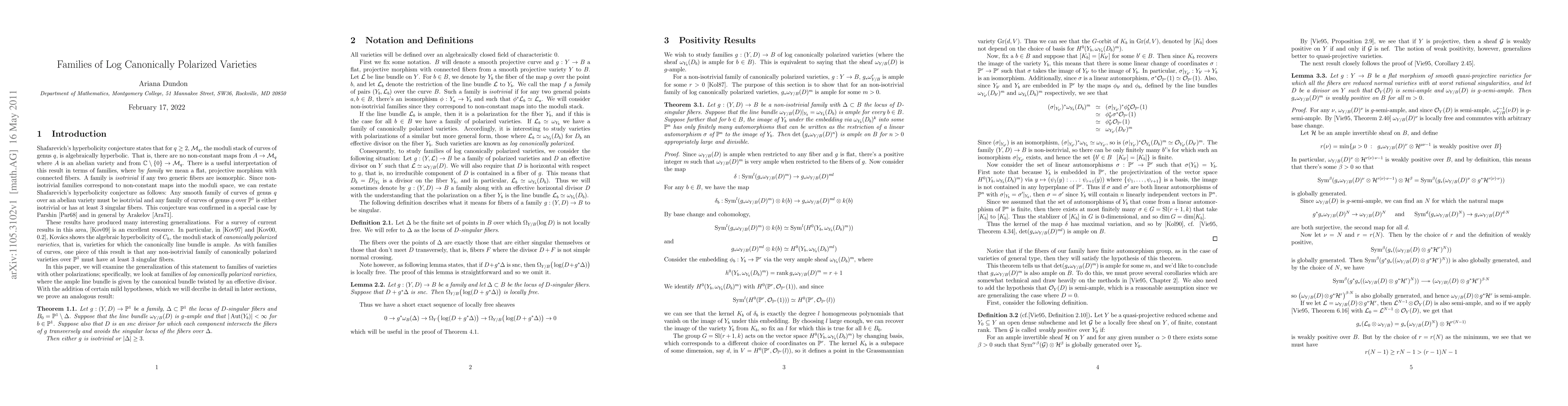 This paper investigates families of log canonically polarized varieties over $\P^1$, focusing on the number of singular fibers. Under mild hypotheses, it proves that such families either are isotrivial or contain at least three singular fibers, extending Shafarevich's Conjecture.