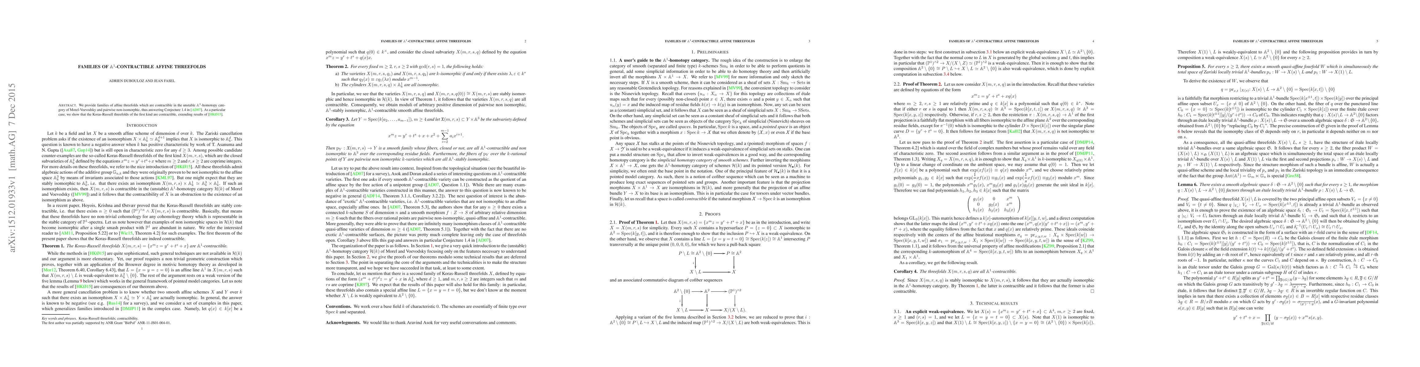 Summary: This paper presents families of affine threefolds that are contractible in the unstable $\mathbb A^1$-homotopy category, demonstrating their pairwise non-isomorphism and showing the contractibility of Koras-Russell threefolds of the first kind, extending prior results.
