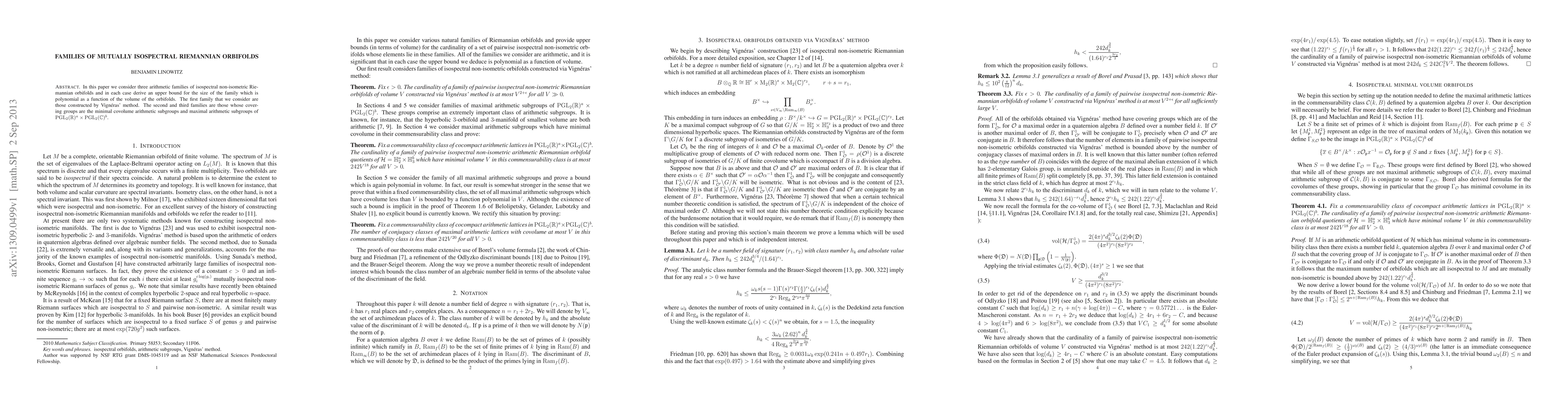 This paper explores three arithmetic families of isospectral yet non-isometric Riemannian orbifolds, deriving polynomial upper bounds for the size of each family based on their volume. The study focuses on orbifolds constructed via Vigneras' method and those associated with minimal covolume and maximal arithmetic subgroups of PGL_2(R)^a x PGL_2(C)^b.