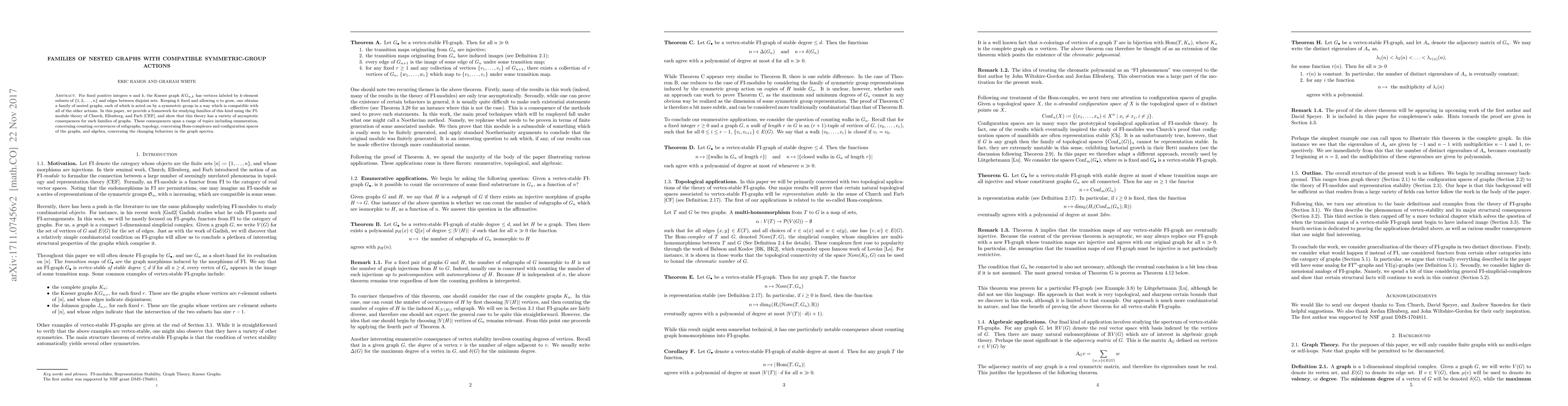 For fixed positive integers $n$ and $k$, the Kneser graph $KG_{n,k}$ has vertices labeled by $k$-element subsets of $\{1,2,\dots,n\}$ and edges between disjoint sets. Keeping $k$ fixed and allowing $n$ to grow, one obtains a family of nested graphs, each of which is acted on by a symmetric group in a way which is compatible with all of the other actions. In this paper, we provide a framework for studying families of this kind using the FI-module theory of Church, Ellenberg, and Farb, and show that this theory has a variety of asymptotic consequences for such families of graphs. These consequences span a range of topics including enumeration, concerning counting occurrences of subgraphs, topology, concerning Hom-complexes and configuration spaces of the graphs, and algebra, concerning the changing behaviors in the graph spectra.