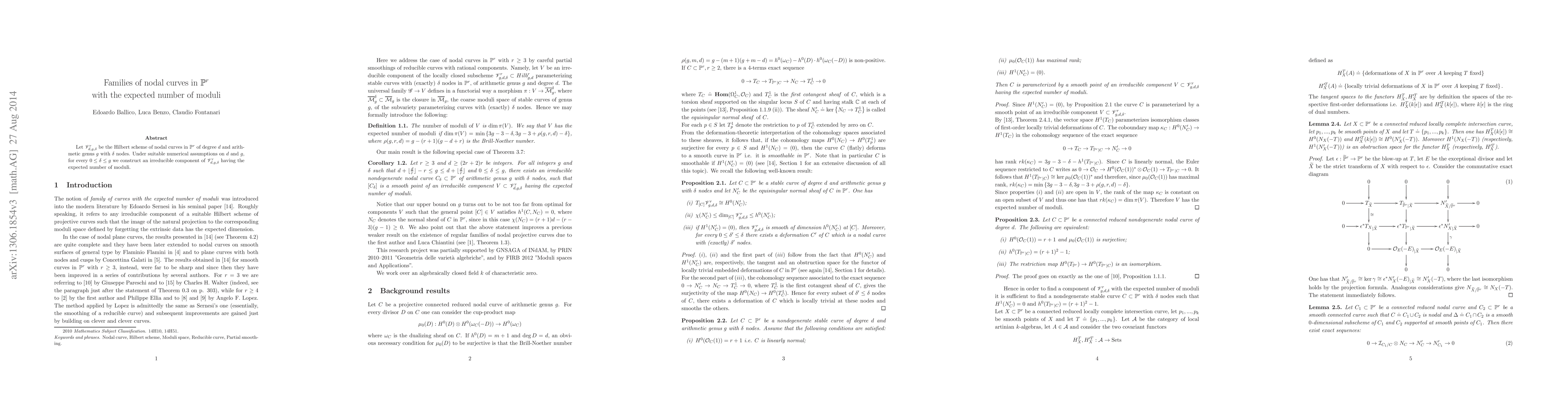 This paper constructs an irreducible component of the Hilbert scheme of nodal curves in projective space with the expected number of moduli under specific numerical conditions on degree, genus, and node count. It demonstrates the existence of families of such curves with the anticipated moduli.