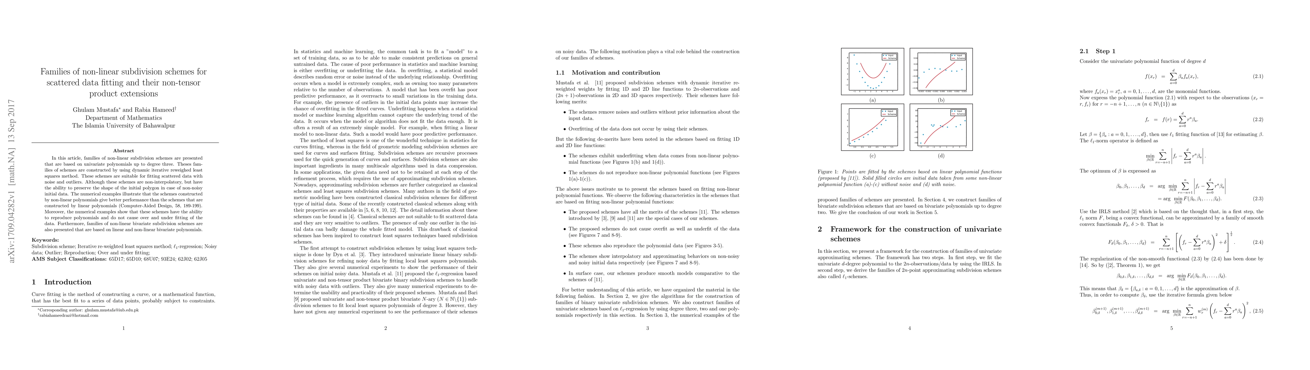 Researchers present families of non-linear subdivision schemes for fitting scattered data, showing improved performance over linear polynomial schemes in reproducing curves and avoiding over/underfitting.