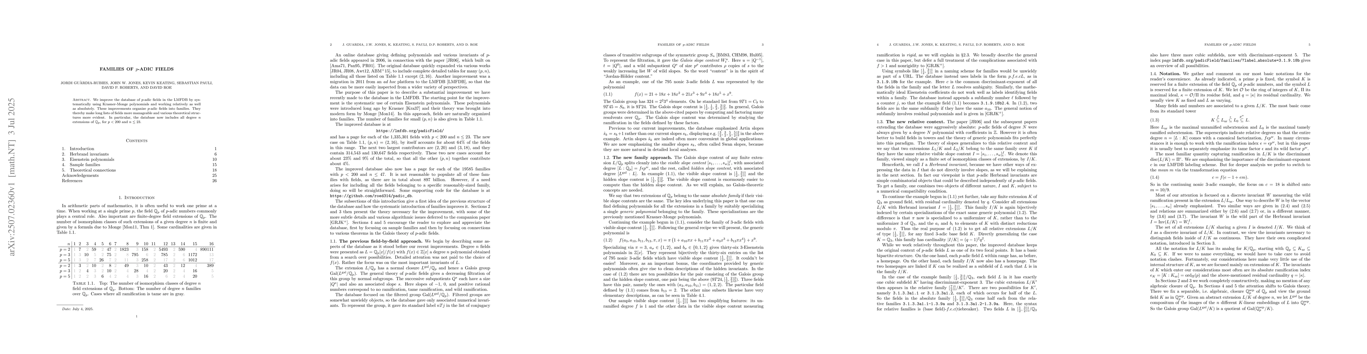We improve the database of $p$-adic fields in the LMFDB by systematically using Krasner-Monge polynomials and working relatively as well as absolutely. These improvements organize $p$-adic fields into families. They thereby make long lists of fields more manageable and various theoretical structures more evident. In particular, the database now includes all degree $n$ extensions of $\mathbb{Q}_p$, for $p<200$ and $n \leq 23$.