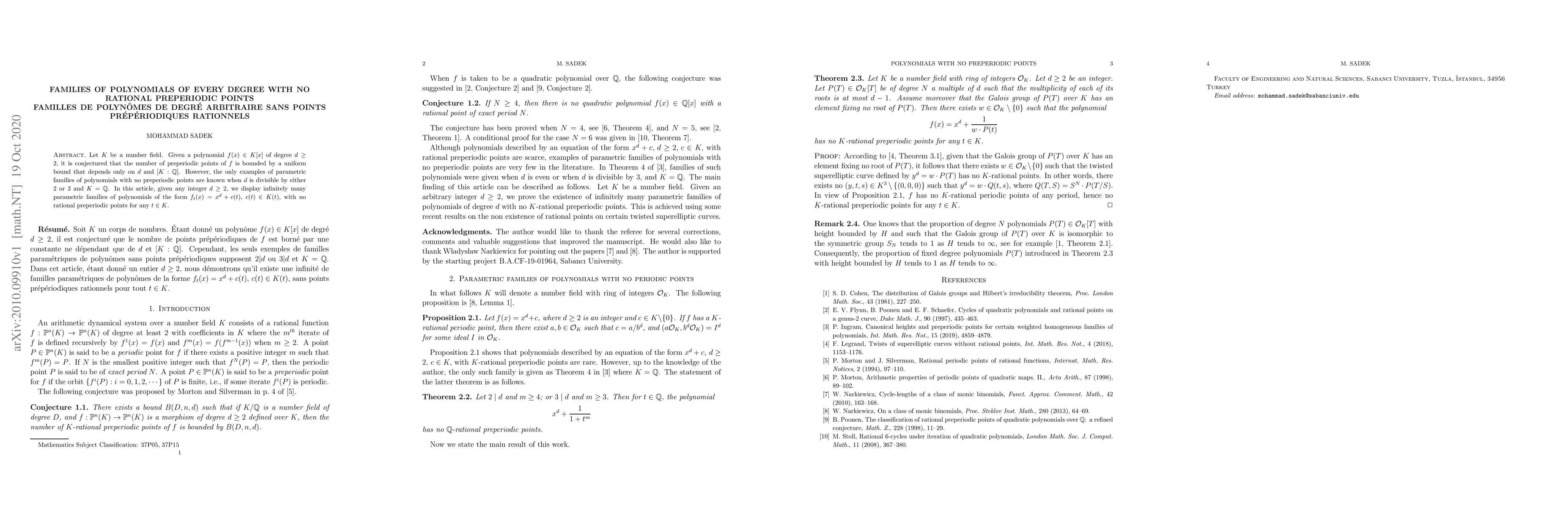 The research uses recent results on the non-existence of rational points on certain twisted superelliptic curves to prove the existence of parametric families of polynomials with no rational preperiodic points.