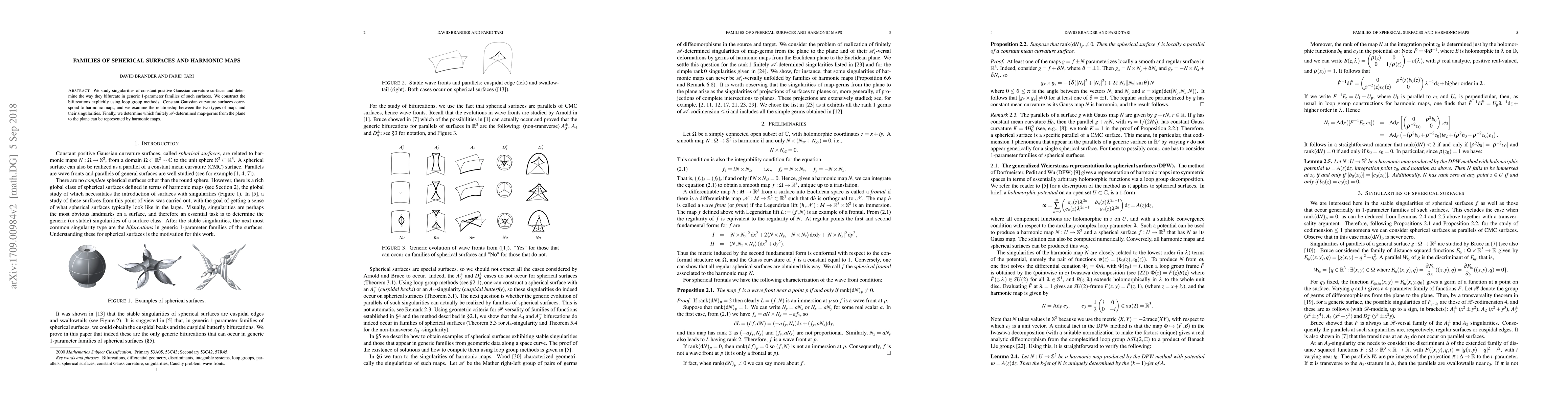 This paper investigates the bifurcations of surfaces with constant positive Gaussian curvature within 1-parameter families, employing loop group methods. It explores the relationship between these surfaces and harmonic maps, concluding which finitely A-determined plane map-germs can be represented as harmonic maps.