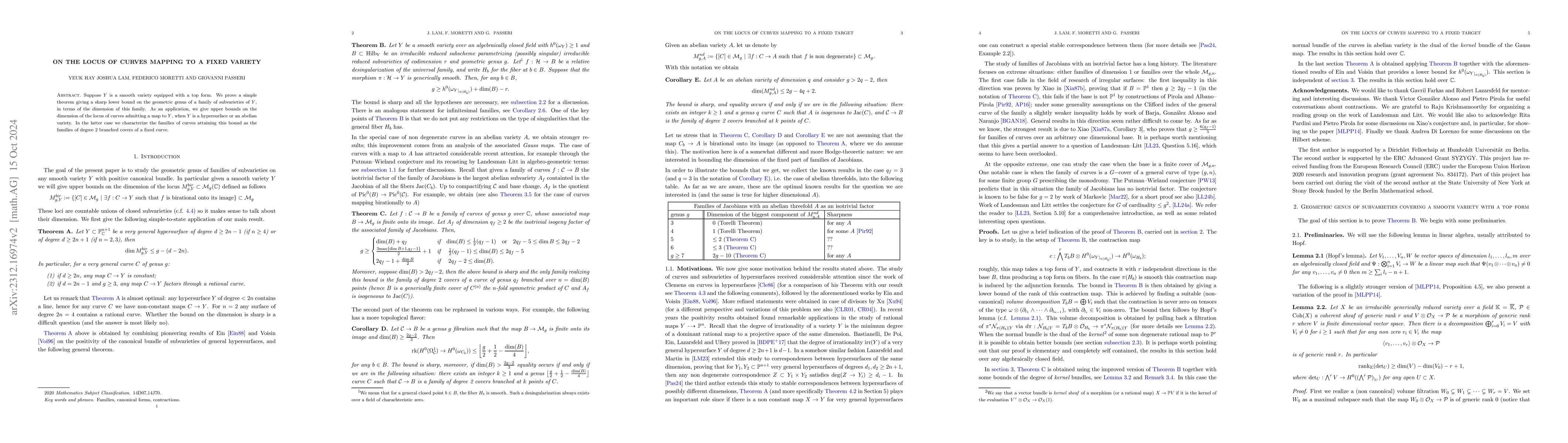 Suppose $Y$ is a smooth variety equipped with a top form. We prove a simple theorem giving a sharp lower bound on the geometric genus of a family of subvarieties of $Y$, in terms of the dimension of this family. Two elementary applications are presented. On the one hand, we show that for a very general curve $C$ and a very general hypersurface $Y\subset \mathbb P^{n+1}$ of degree $\ge 2n+1$, any map $C \to Y$ is constant. On the other hand, we give a lower bound on the genus of a family of curves with an isotrivial factor in the associated family of Jacobians; we also characterize the families of curves attaining this bound as the families of degree $2$ branched covers of a fixed curve.
