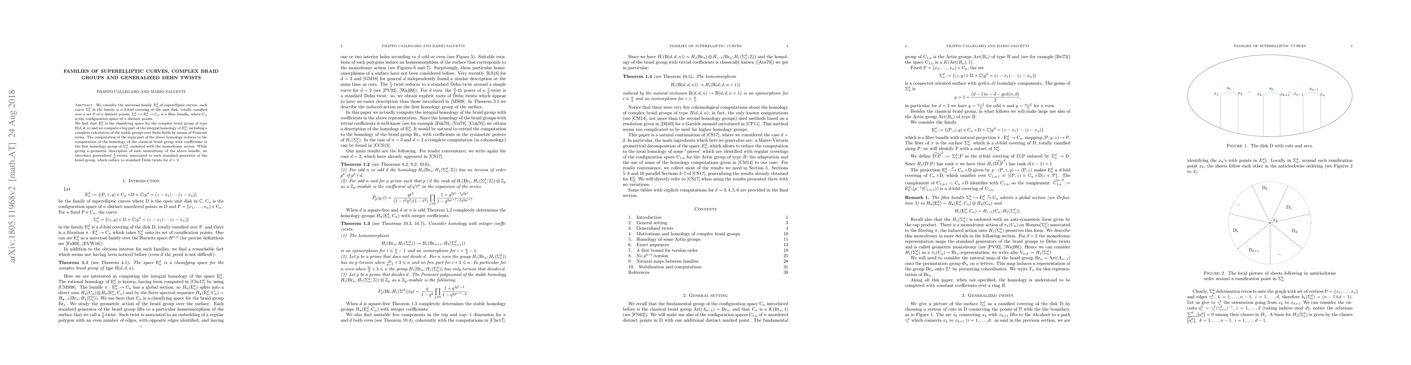 We consider the universal family $E_n^d$ of superelliptic curves: each curve $\Sigma_n^d$ in the family is a $d$-fold covering of the unit disk, totally ramified over a set $P$ of $n$ distinct points; $\Sigma_n^d\hookrightarrow E_n^d\to C_n$ is a fibre bundle, where $C_n$ is the configuration space of $n$ distinct points. We find that $E_n^d$ is the classifying space for the complex braid group of type $B(d,d,n)$ and we compute a big part of the integral homology of $E_n^d,$ including a complete calculation of the stable groups over finite fields by means of Poincar\`e series. The computation of the main part of the above homology reduces to the computation of the homology of the classical braid group with coefficients in the first homology group of $\Sigma_n^d,$ endowed with the monodromy action. While giving a geometric description of such monodromy of the above bundle, we introduce generalized $1\over d$-twists, associated to each standard generator of the braid group, which reduce to standard Dehn twists for $d=2.$