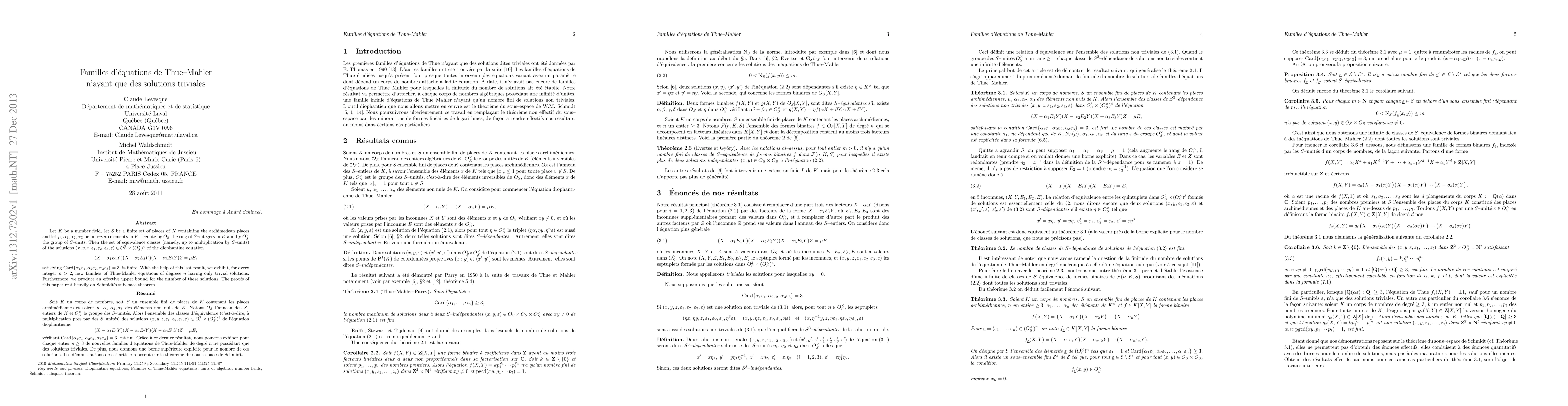 This paper proves that certain Diophantine equations, called Thue-Mahler equations, have only trivial solutions using Schmidt's subspace theorem. It also provides an effective upper bound for the number of these solutions.