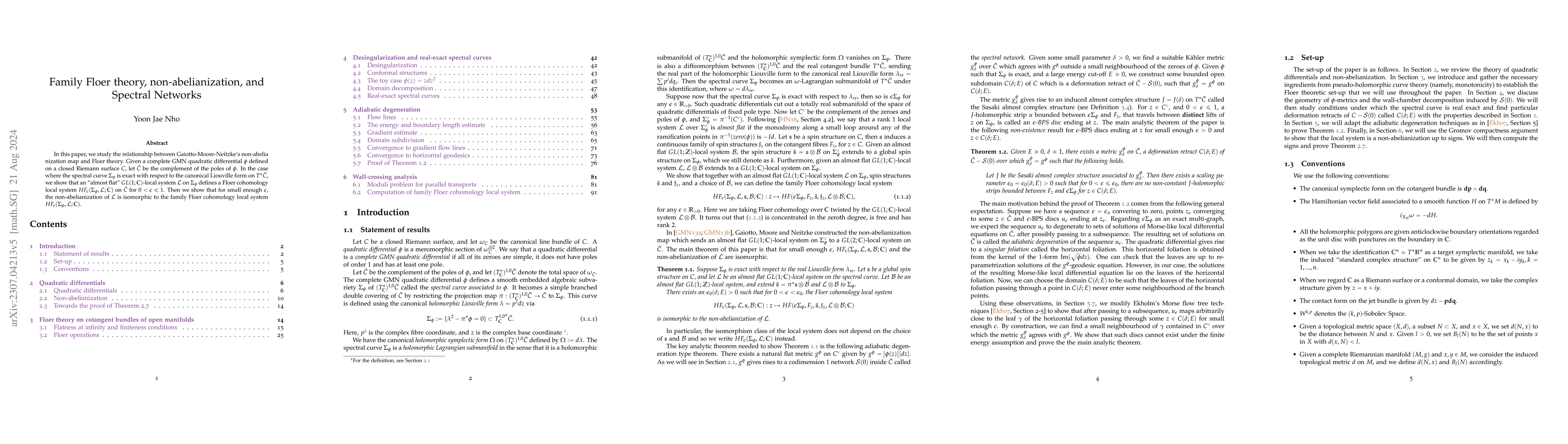 In this paper, we study the relationship between Gaiotto-Moore-Neitzke's non-abelianization map and Floer theory. Given a complete GMN quadratic differential $\phi$ defined on a closed Riemann surface $C$, let $\tilde{C}$ be the complement of the poles of $\phi$. In the case where the spectral curve $\Sigma_{\phi}$ is exact with respect to the canonical Liouville form on $T^{\ast}\tilde{C}$, we show that an "almost flat" $GL(1;\mathbb{C})$-local system $\mathcal{L}$ on $\Sigma_{\phi}$ defines a Floer cohomology local system $HF_{\epsilon}(\Sigma_{\phi},\mathcal{L};\mathbb{C})$ on $\tilde{C}$ for $0< \epsilon\leq 1$. Then we show that for small enough $\epsilon$, the non-abelianization of $\mathcal{L}$ is isomorphic to the family Floer cohomology local system $HF_{\epsilon}(\Sigma_{\phi},\mathcal{L};\mathbb{C})$