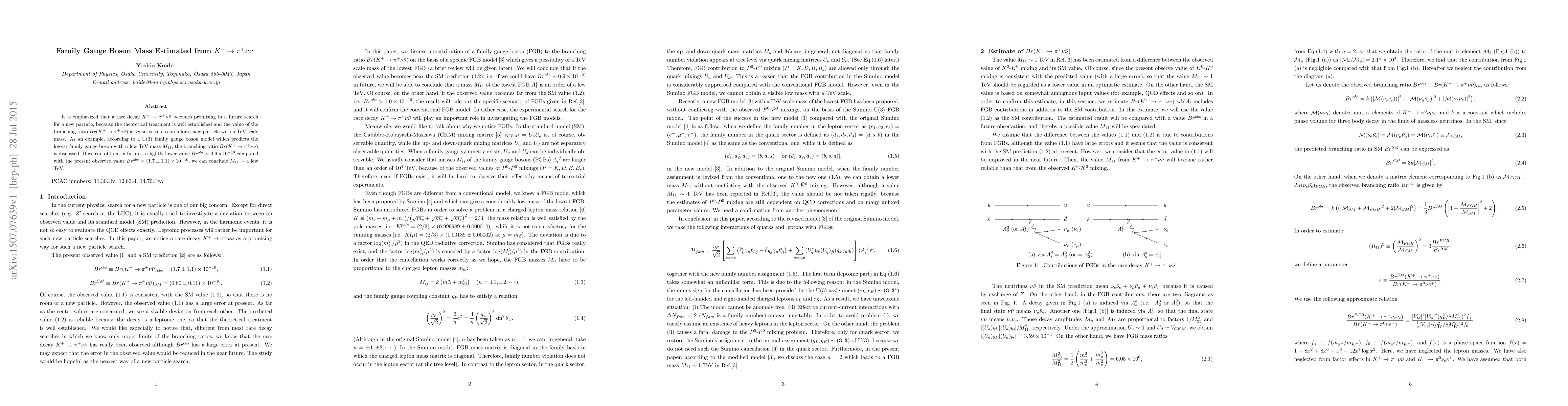 This paper explores the potential of the rare decay $K^+ \rightarrow \pi^+ \nu \bar{\nu}$ to reveal a new particle, estimating the mass of a U(3) family gauge boson $M_{11}$ to be a few TeV if future observations show a lower branching ratio than current values.