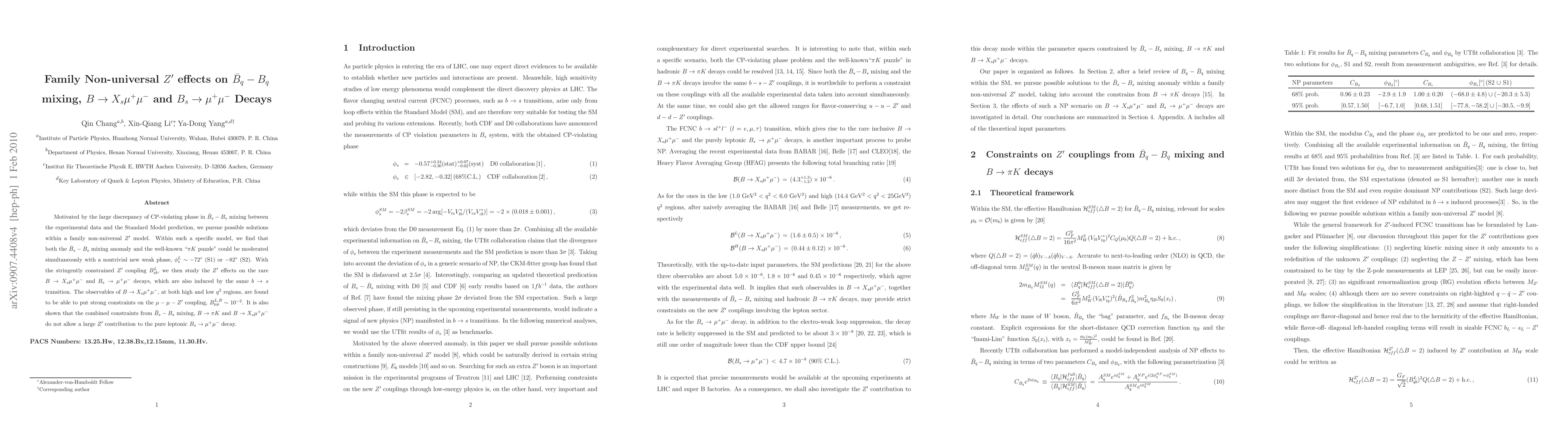 This paper explores the impact of a family non-universal $Z^{\prime}$ model on the $\bar{B}_s-B_s$ mixing anomaly and the "$\pi K$ puzzle," proposing a new weak phase to moderate both discrepancies. It also investigates the $Z^{\prime}$ effects on rare decays $B\to X_s \mu^+\mu^-$ and $B_s\to \mu^+\mu^-$, finding strong constraints on the $Z^{\prime}$ coupling from these processes.