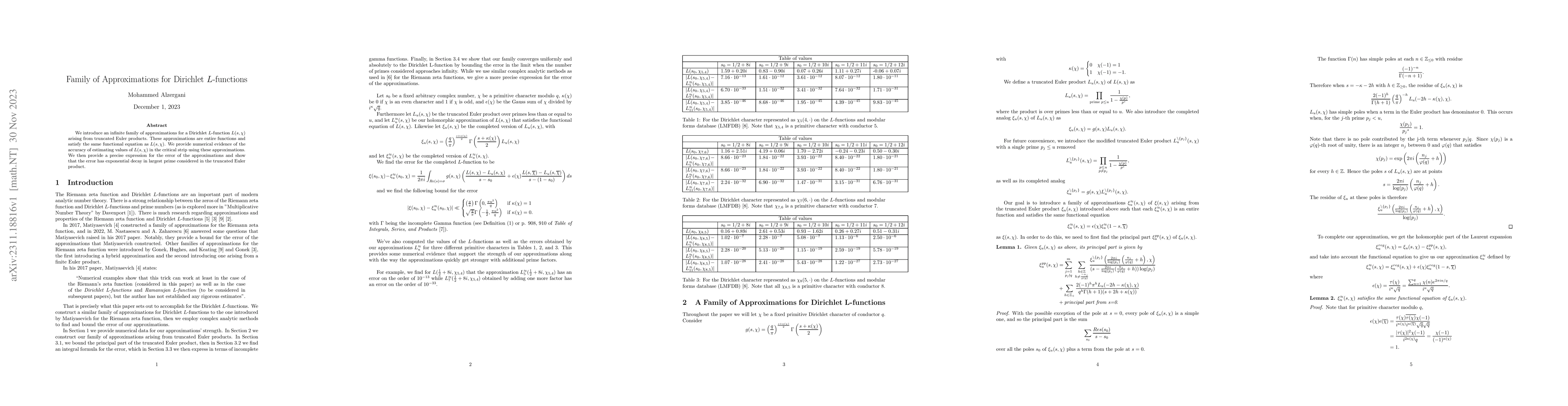This paper introduces an infinite family of entire function approximations for Dirichlet $L$-functions $L(s, \chi)$ derived from truncated Euler products. The approximations accurately estimate $L(s, \chi)$ values in the critical strip, with the error exhibiting exponential decay relative to the largest prime in the truncation.